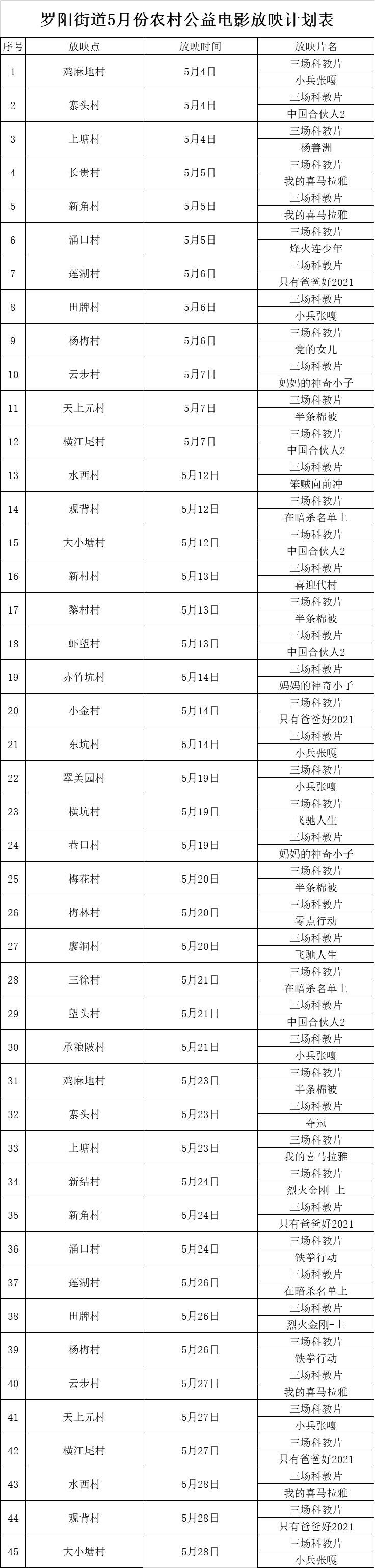 為提高鄉(xiāng)村公共文化服務(wù)效能,豐富我街道農(nóng)村群眾的文化生活,讓公益電影點(diǎn)亮鄉(xiāng)村夜晚,增強(qiáng)農(nóng)村群眾文化獲得感、幸福感,羅陽(yáng)街道開(kāi)展了2023年農(nóng)村公益電影放映活動(dòng),希望廣大群眾朋友積極參與前往觀影!