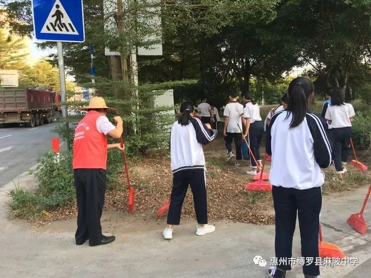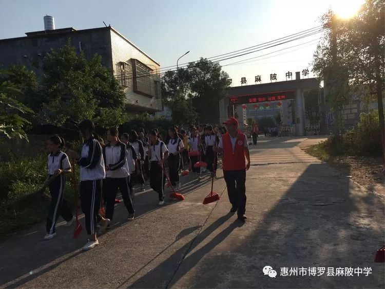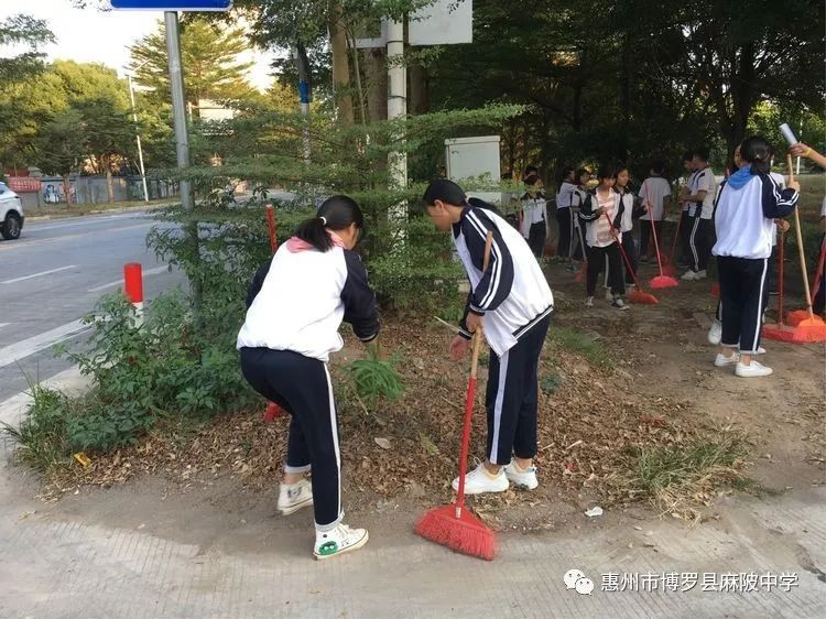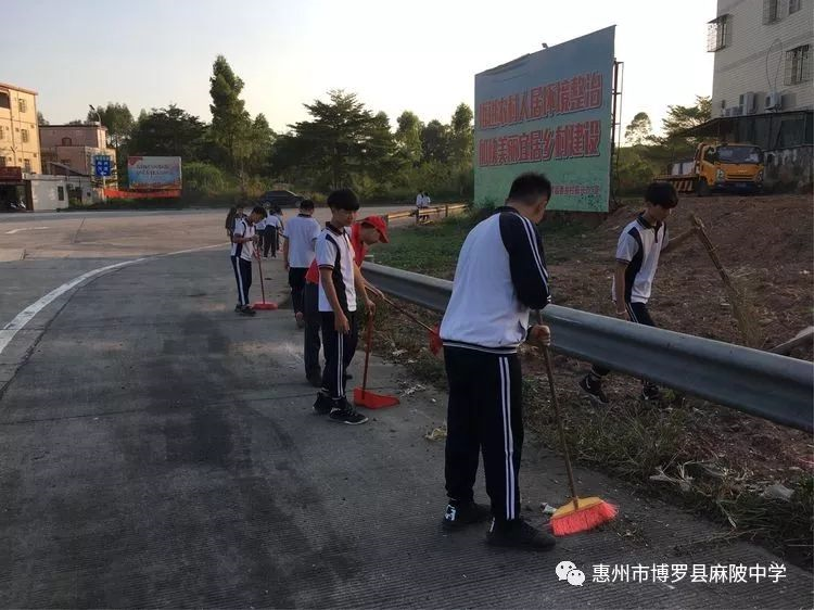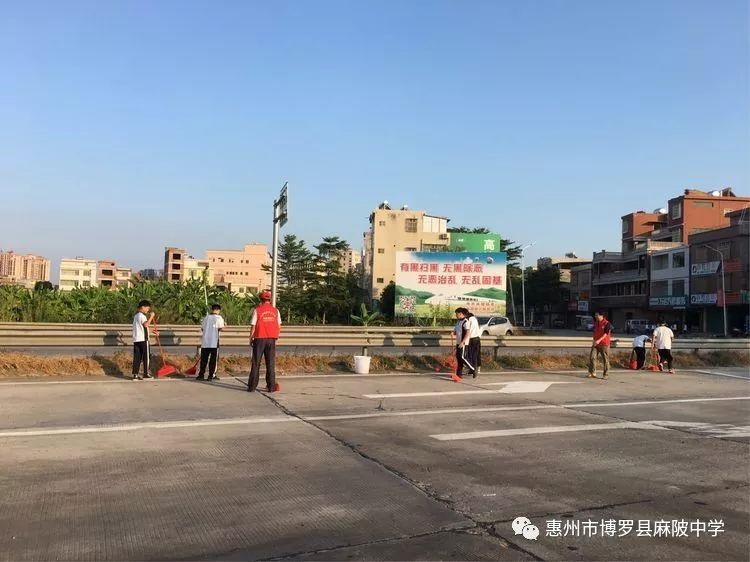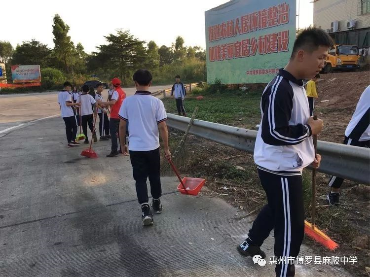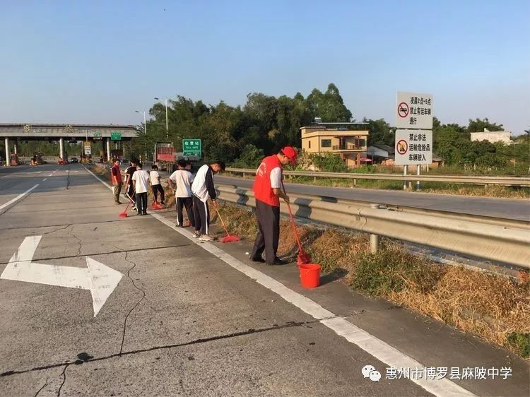 麻陂中學志愿者老師與八年級學生共有150多人,在副校長溫小彪的帶領下,走出校門,到紅女大道、高速公路出入口兩側進行一次清潔大掃除。師生分成4個小組,每組有4個志愿者老師組織勞動及負責學生的安全工作。在清潔道路兩旁現場,師生們熱情高漲,不怕臟不怕累,每個人都干得十分認真,用自己的實際行動為環境整潔出一份力。通過此次活動,同學們深受教育,并表示積極宣傳志愿者精神,用實際行動影響和帶動周邊的人踴躍參加"創文明縣城、建設美麗家園 "志愿者活動,努力踐行社會主義核心價值觀,為營造一個溫暖、文明的和諧博羅貢獻力量。
