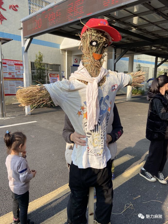 活動期間,家長們忙著扎稻草,剪麻繩,孩子們則幫著給稻草人戴帽子、畫眼睛...創(chuàng)意多多,大家齊心協(xié)力,忙得不亦樂乎。操場上還時不時傳來孩子們的加油鼓勁聲。