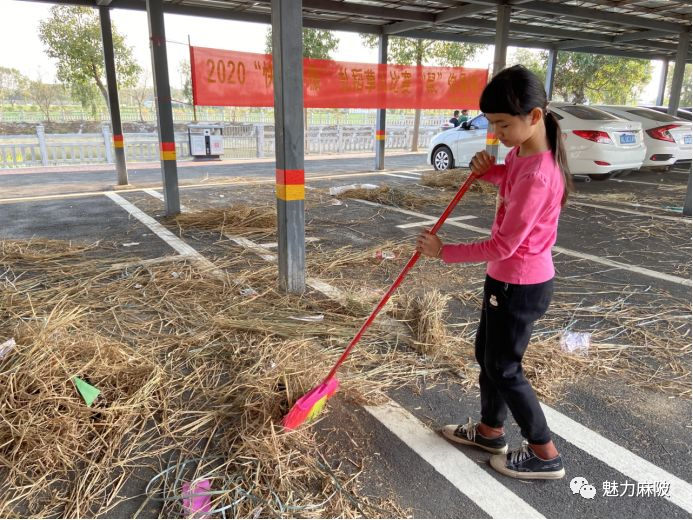 活動結束后,志愿者們帶領小朋友一起將活動剩下的稻草收集起來,把垃圾打掃干凈才離開活動現(xiàn)場。