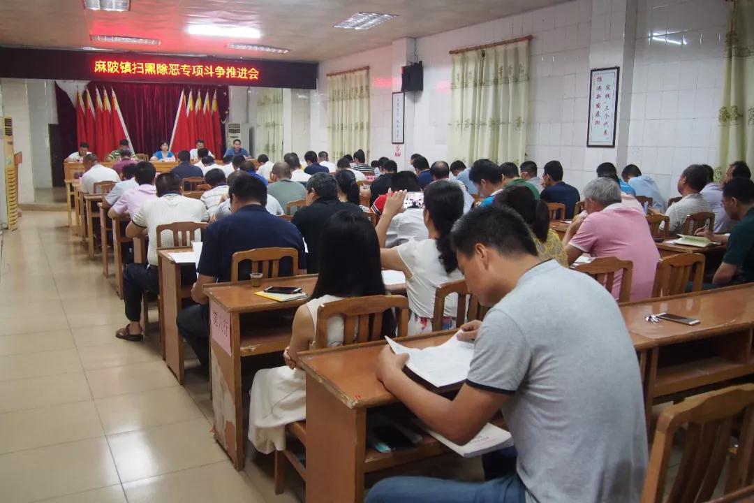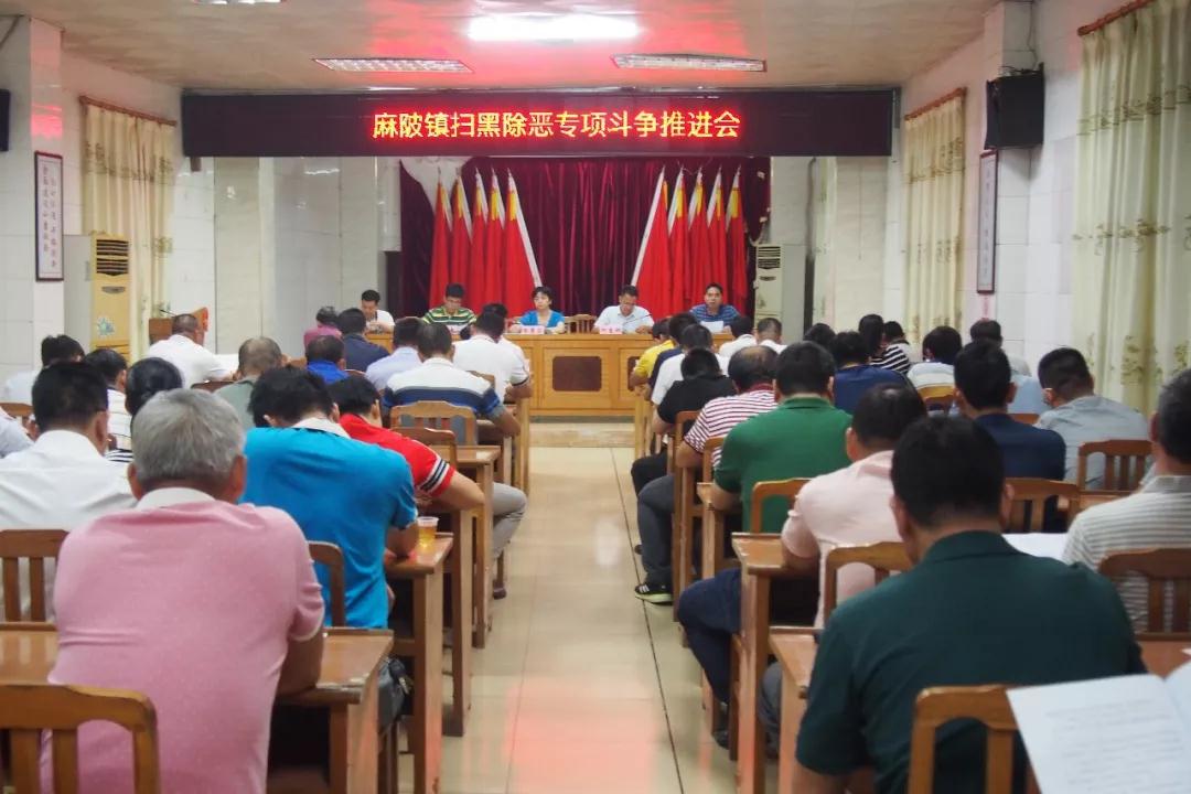 2018年8月27日上午,麻陂鎮召開掃黑除惡專項斗爭推進會。會議由鎮委副書記、鎮長、鎮掃黑除惡專項斗爭領導小組常務副組長鄧惠輝同志主持,參加會議的人員包括鎮三套班子成員、政府機關各部門、圩鎮各部門負責人、各村(居)支部書記、主任。