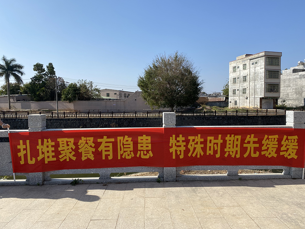 臨近春節,麻陂鎮各村(社區)積極開展春節新冠肺炎疫情防控宣傳工作,在村(社區)主要干道懸掛橫幅、張貼宣傳海報,提醒廣大村(居)民不扎堆、不聚集,做好安全防護。