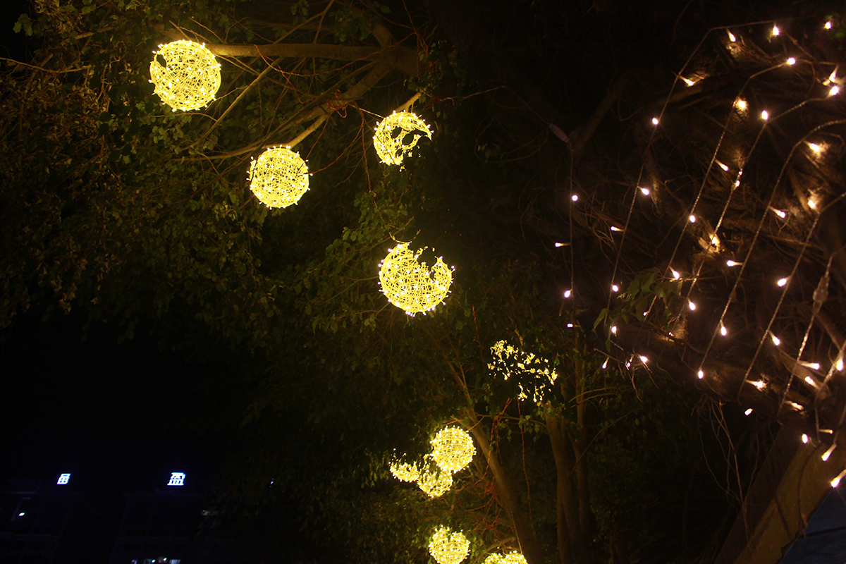 麻陂鎮主要干道、場所均懸掛起了LED彩燈,以流光溢彩的燈光迎接新年的到來。