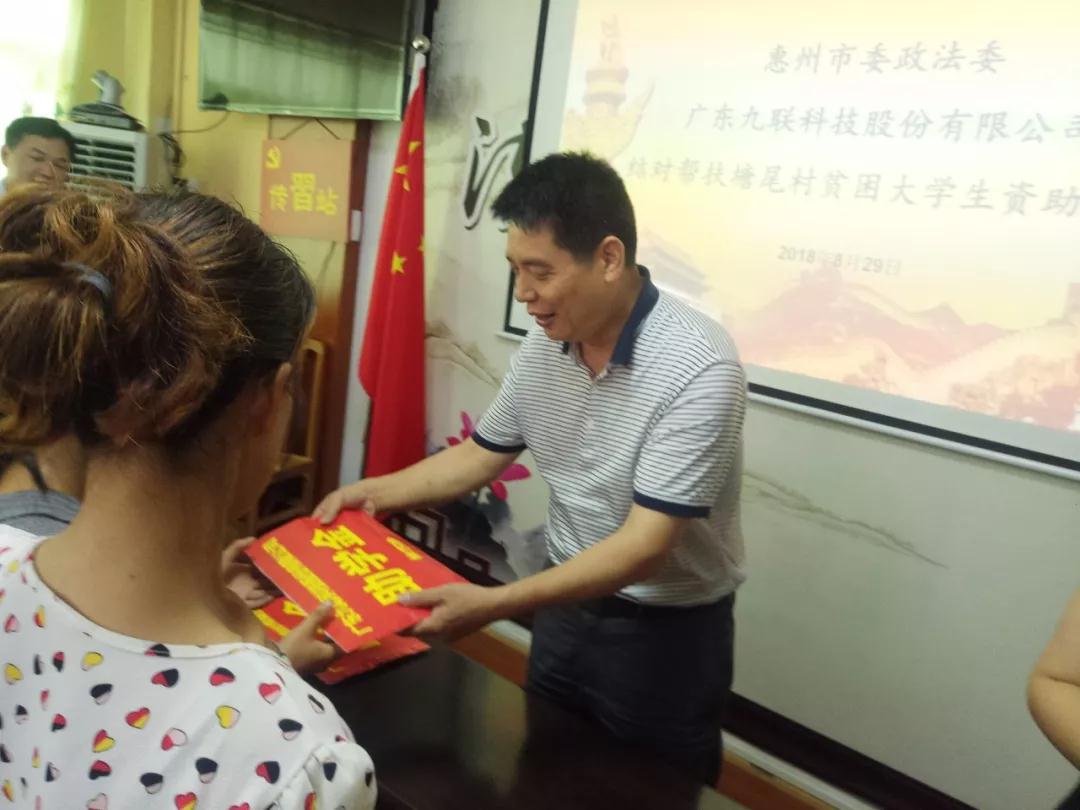 8月29日,我鎮(zhèn)舉行市委政法委、廣東九聯(lián)科技股份有限公司結(jié)對幫扶塘尾村貧困大學(xué)生資助儀式。市委政法委專職副書記巫遠(yuǎn)斌、市委政法委政治處主任謝慶偉、廣東九聯(lián)科技股份有限公司副總經(jīng)理胡嘉惠、鎮(zhèn)委副書記李育輝、廣東九聯(lián)科技股份有限公司相關(guān)工作人員等人參加了會(huì)議。
