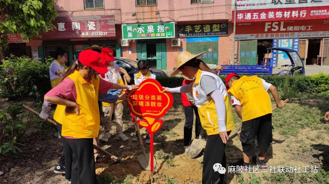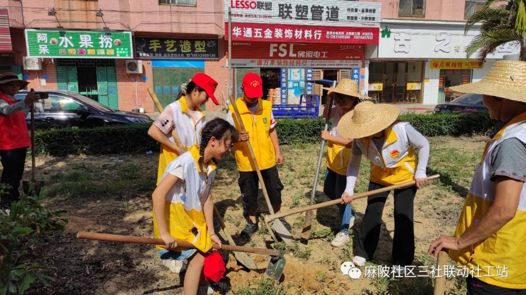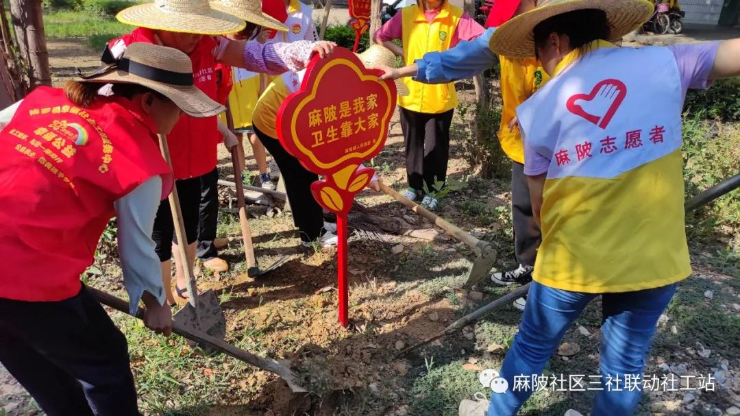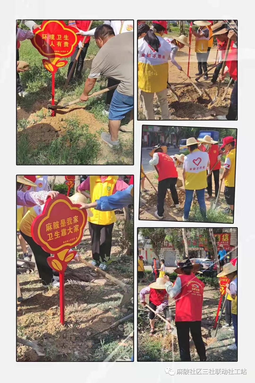 活動共分兩組進行,一組用農耕工具加混凝土放置鐵桿式環境衛生宣傳標語。社區黨支部副書記馬玉萍帶著2個小志愿者一起參與活動,爭先動手揮土栽種;社區老黨員邱滿嬌嫻熟地揮動著鋤頭,不認識她的人還以為是種田能手;溫小梅等大、小志愿者們則各有分工,一起“種”下美好與希望!