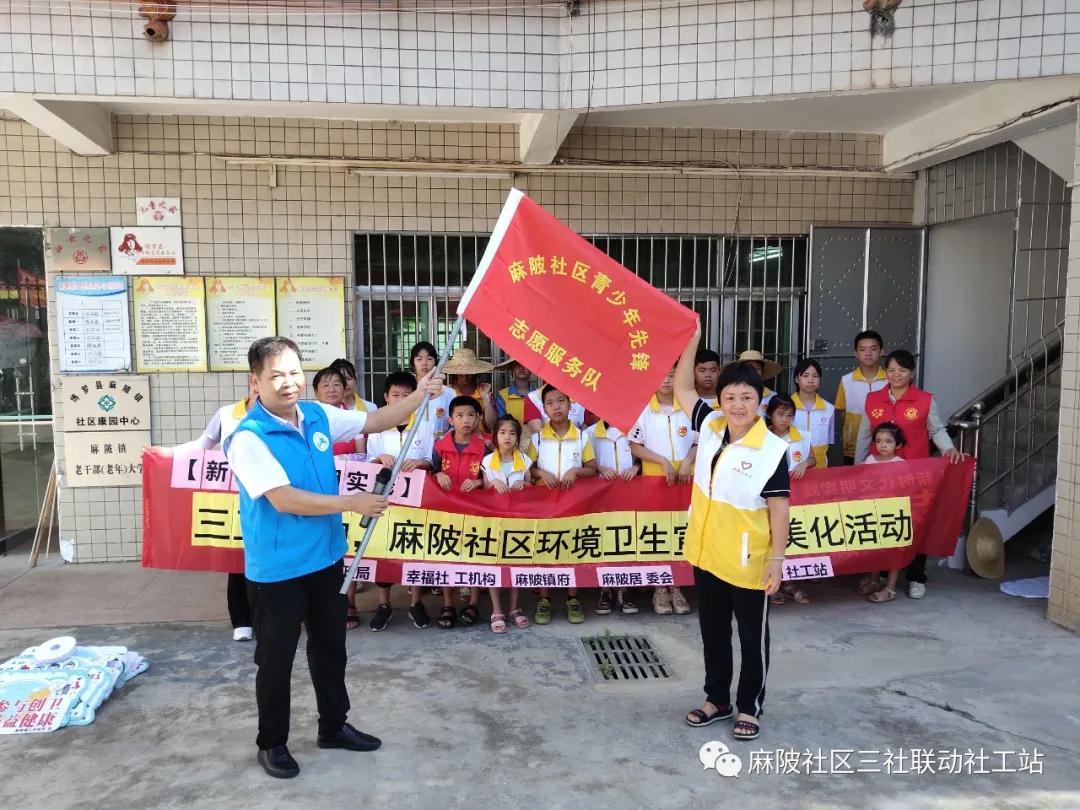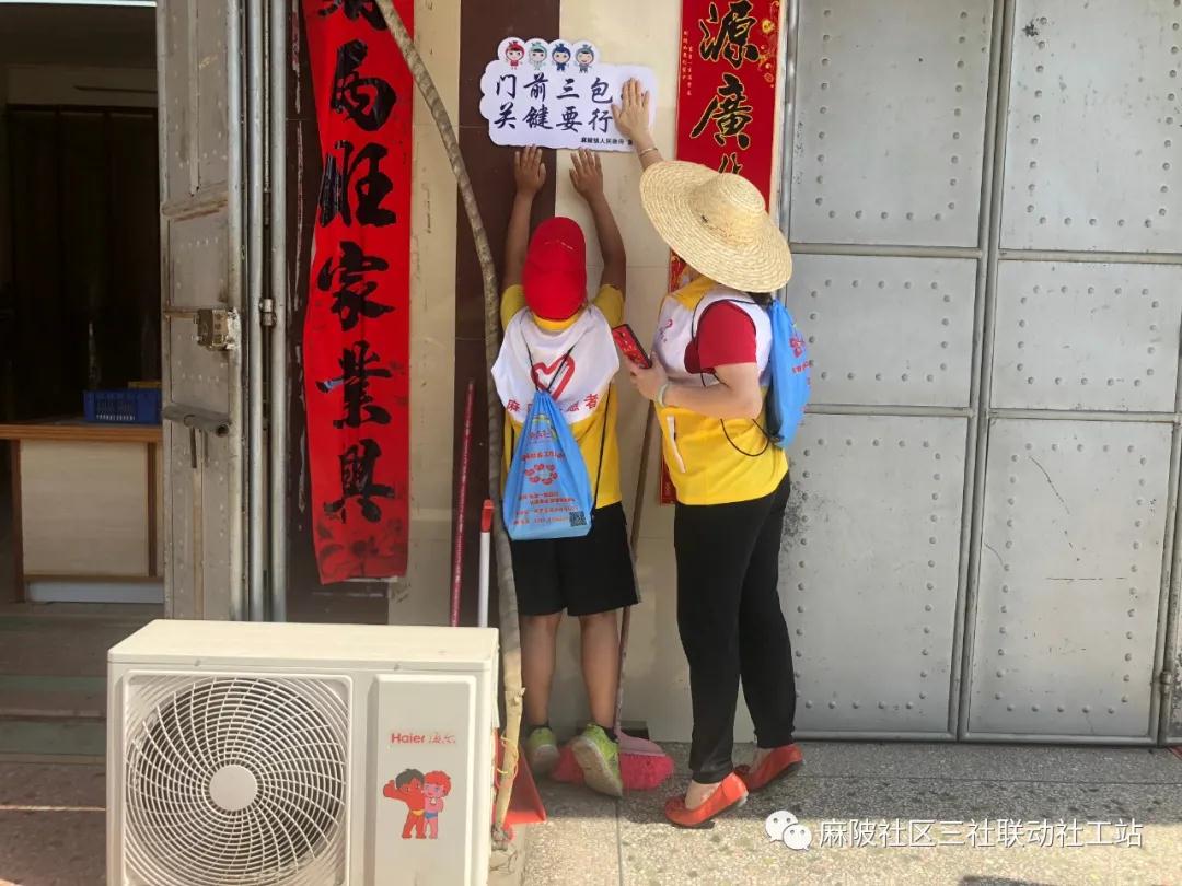 為了持續深入開展社區環境衛生宣傳,提高麻陂社區居民“門前三包”意識,家家參與、人人動手參與創建一個美好的社區衛生環境,5月22日上午, 麻陂社區“三社聯動”社工站聯合麻陂社區居委會,近三十名社區黨員、社工和志愿者隊伍一大早浩浩蕩蕩走向商業街和市場,通過放置標語牌和張貼環境衛生宣傳標語等的方式,用愛心行動持續向社區居民宣傳環境衛生。