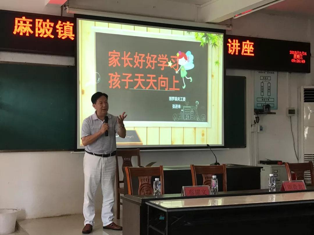 11月14日,麻陂中心小學召開麻陂鎮中小學家長教育主題講座,原博羅縣副縣長、關工委第一副主任田貴龍,原黨校校長、關工委常務副主任張進來,鎮委委員蔡耀文,麻陂中學校長葉利雄,中心小學李瑞豐出席講座。講座由李瑞豐同志主持,張進來同志主講。