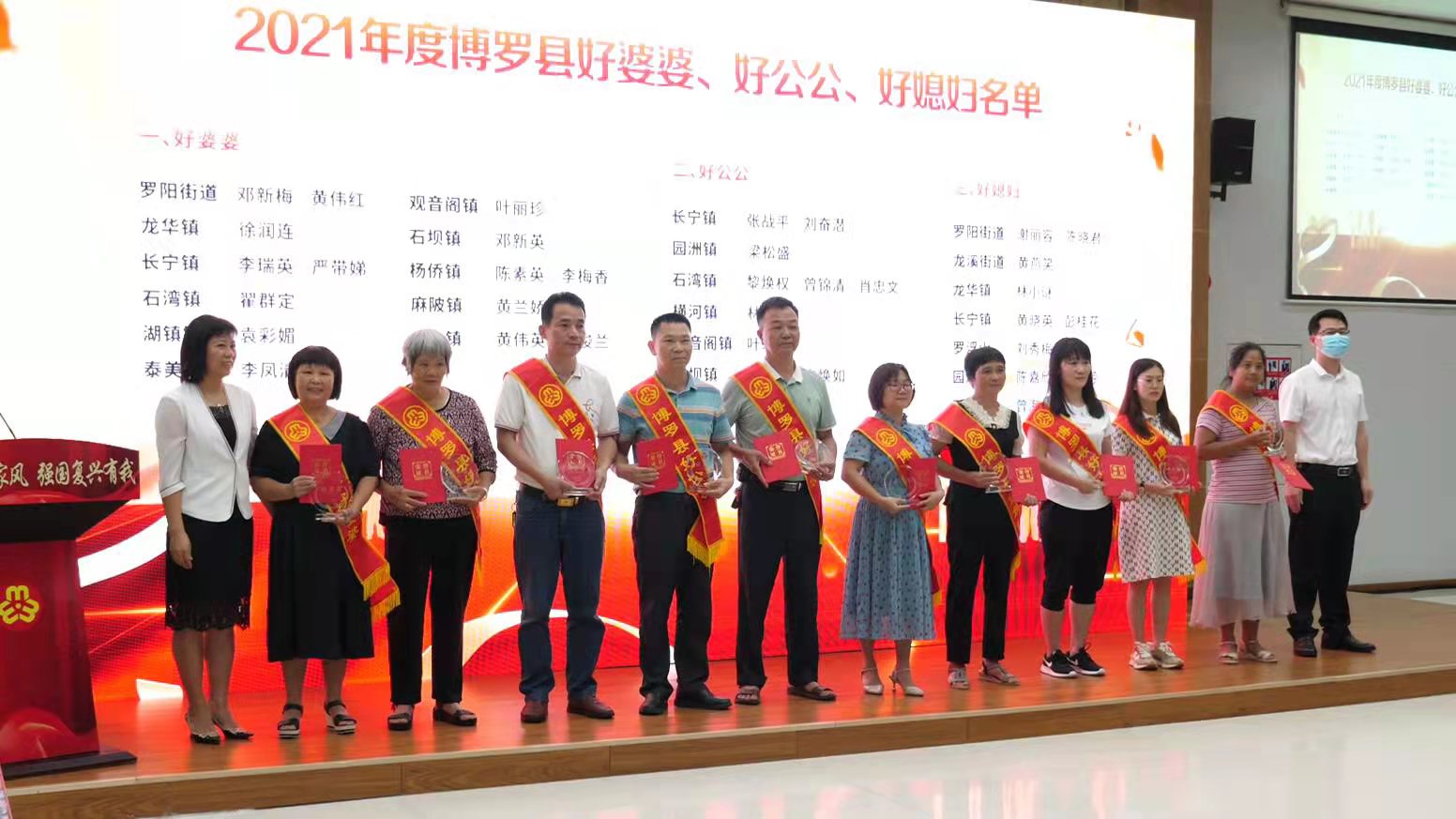 經(jīng)自下而上,層層推薦,綜合評審,麻陂鎮(zhèn)李志忠家庭獲得了2021年度博羅縣“'最美家庭、文明家庭'”,黃蘭嬌獲得了2021年度博羅縣“好婆婆”,李敏獲得了2021年度博羅縣“好媳婦”。
