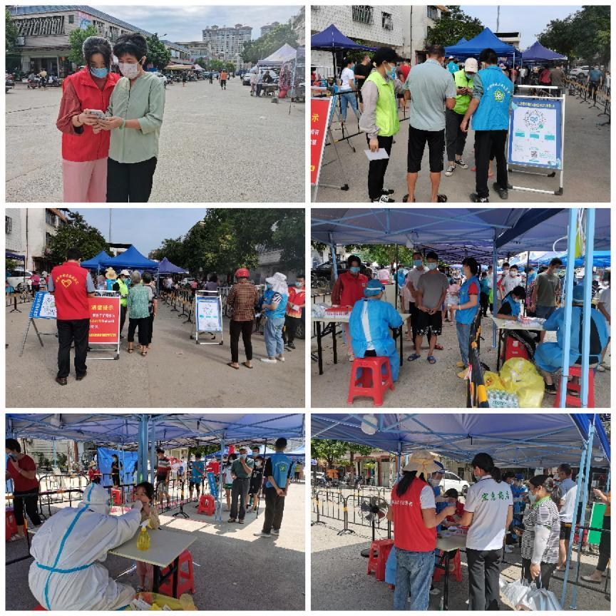 自全鎮開展大規模核酸采樣以來,麻陂鎮在10月4、6、7、8日共4天,于麻陂社區市場西路設核酸采樣點,該采樣點承載著全鎮最大的核酸檢測壓力,但麻陂社區“三社聯動”社工站、麻陂鎮社會工作服務站、麻陂中學志愿服務隊、紅紫荊巾幗志愿服務隊、退役軍人戰旗志愿服務隊、雙百社工、志愿者等社會力量一齊在市場西路核酸采樣點提供志愿服務,助力大規模核酸檢測工作順利完成。檢測過程中社工、志愿者們現場提供督掃場所碼、維持秩序、文明引導、解答咨詢、身份錄入、助老扶老等多樣的志愿服務,為織密扎牢疫情防控安全網貢獻出一份自己的力量。