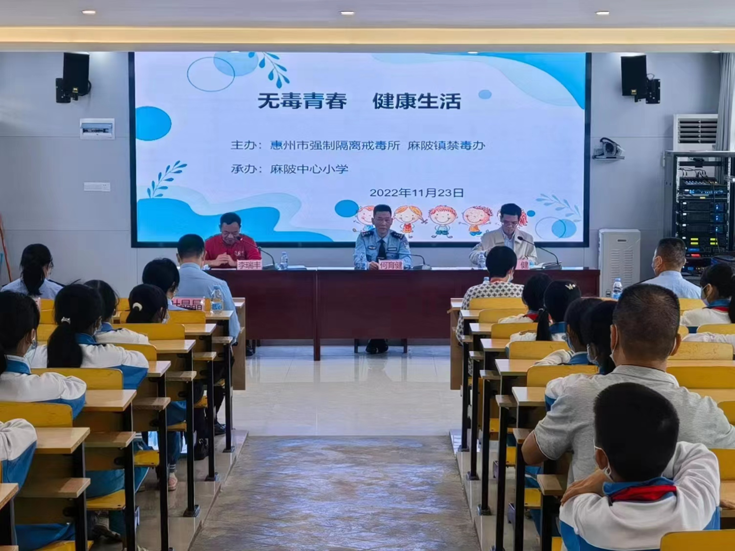 為了深入普及廣大學生禁毒知識,增強學生拒毒、防毒意識,提高毒品預防教育的覆蓋面,2022年11月23日上午,麻陂鎮在麻陂中心小學組織學生參加禁毒教育課堂。惠州市強制隔離戒毒所紀委書記、一級警長何育健,麻陂鎮黨委副書記、鎮長張健,市強戒所有關部門負責人,鎮相關領導等參加了活動。