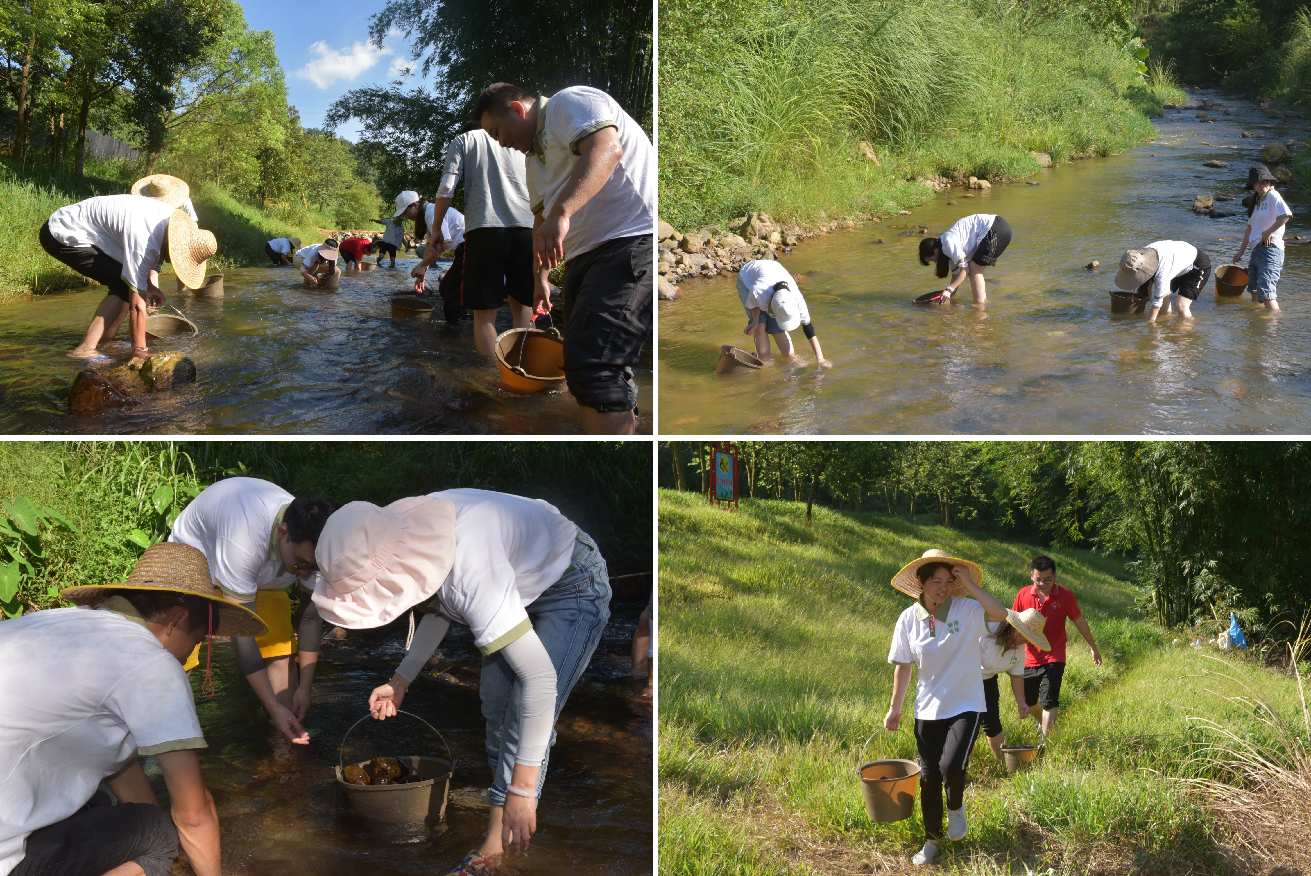 在“花開石上傳真情”公益活動環節中,各隊挽起褲腳、拿著塑料桶在營地淺溪上進行撿拾鵝卵石的比拼,龍山溪畔一派熱火朝天的勞動景象。據悉,這次公益活動中收集的鵝卵石會用于我鎮“百千萬工程”中環寶溪雞籠山綠色人行棧道項目的建設,讓小小的鵝卵石開出“百千萬工程”之花。