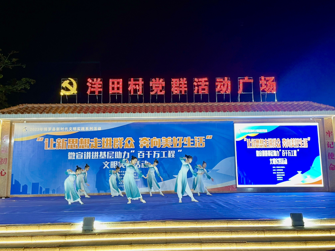 12月21日晚,第四場博羅縣“讓新思想走進群眾 奔向美好生活”微宣講進基層助力“百千萬工程”文明實踐活動在麻陂鎮洋田村舉行,活動通過互動宣講、文藝表演等形式,把黨的創新理論送到群眾“家門口”。