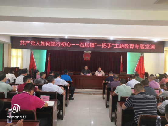10月12日上午,在石壩鎮政府5樓會議室,鎮三套班子成員、鎮政府機關黨總支全體黨員、縣駐鎮單位負責人、村(社區)書記、主任共同聆聽了石壩鎮黨委書記鄧燕鋒以“共產黨人如何踐行初心”為題的主題教育黨課。會議由鎮黨委副書記王錦超主持。