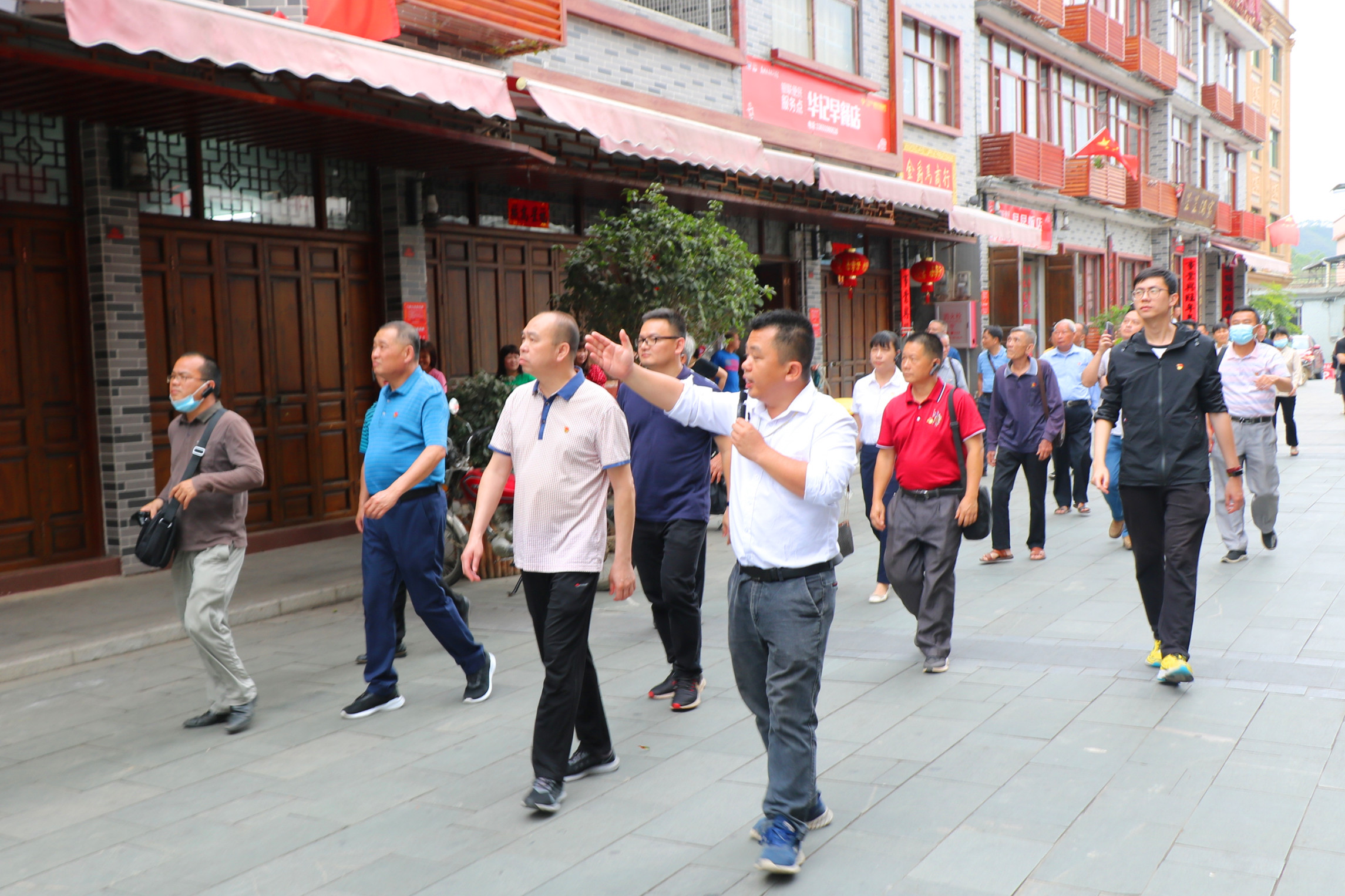 午飯后,石壩鎮黨員干部抵達了惠東高潭紅色教育基地,1927年11月,中國首批區級蘇維埃政權之一——高潭區蘇維埃政府在此誕生,銘記著高潭人民堅強的反抗意志和不屈不撓的斗爭精神。黨員們參觀了馬克思街和列寧街,道路兩旁騎樓造型獨特,馬燈和紅旗營造出濃郁的紅色氛圍。