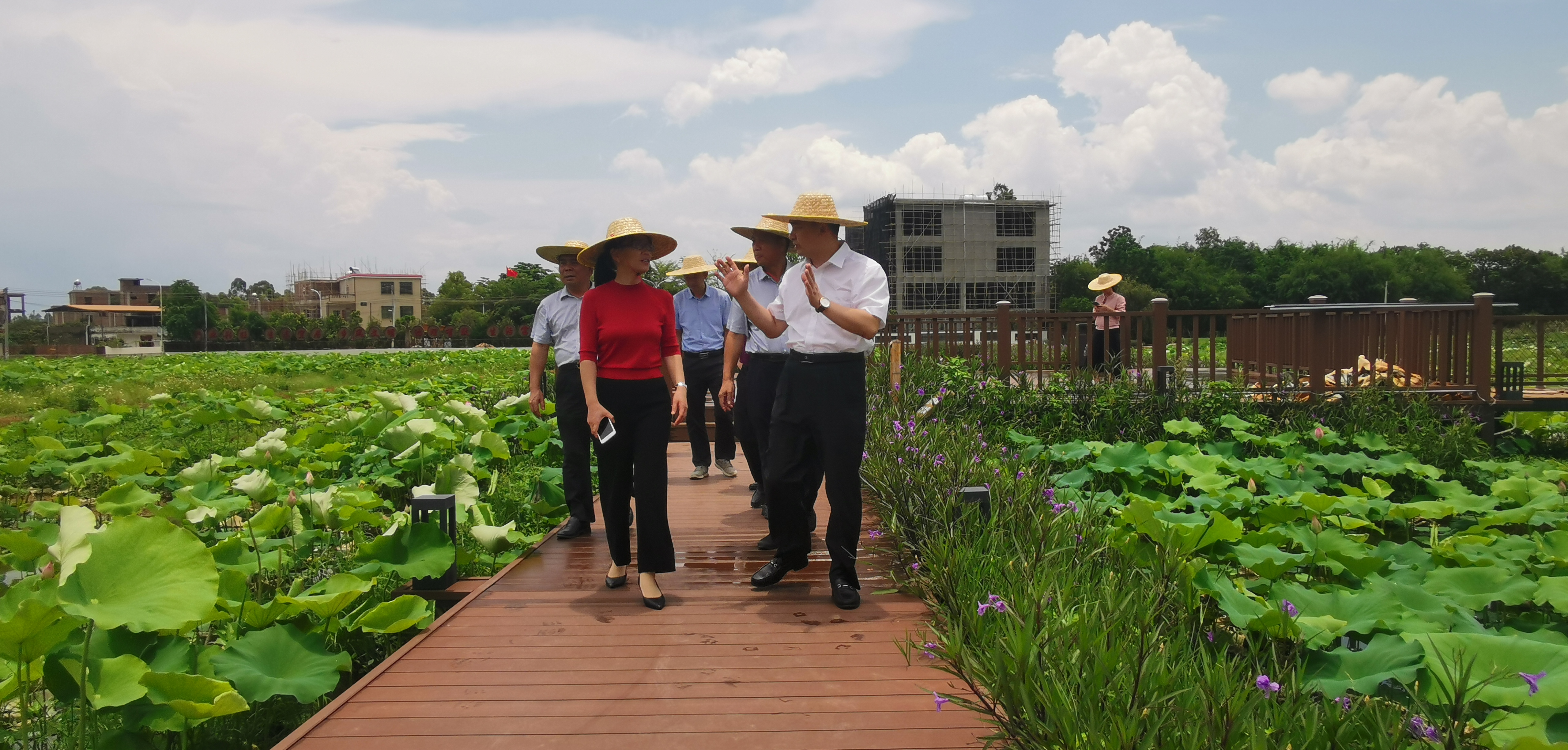 ▲工作組參觀三嘉村百畝荷花園