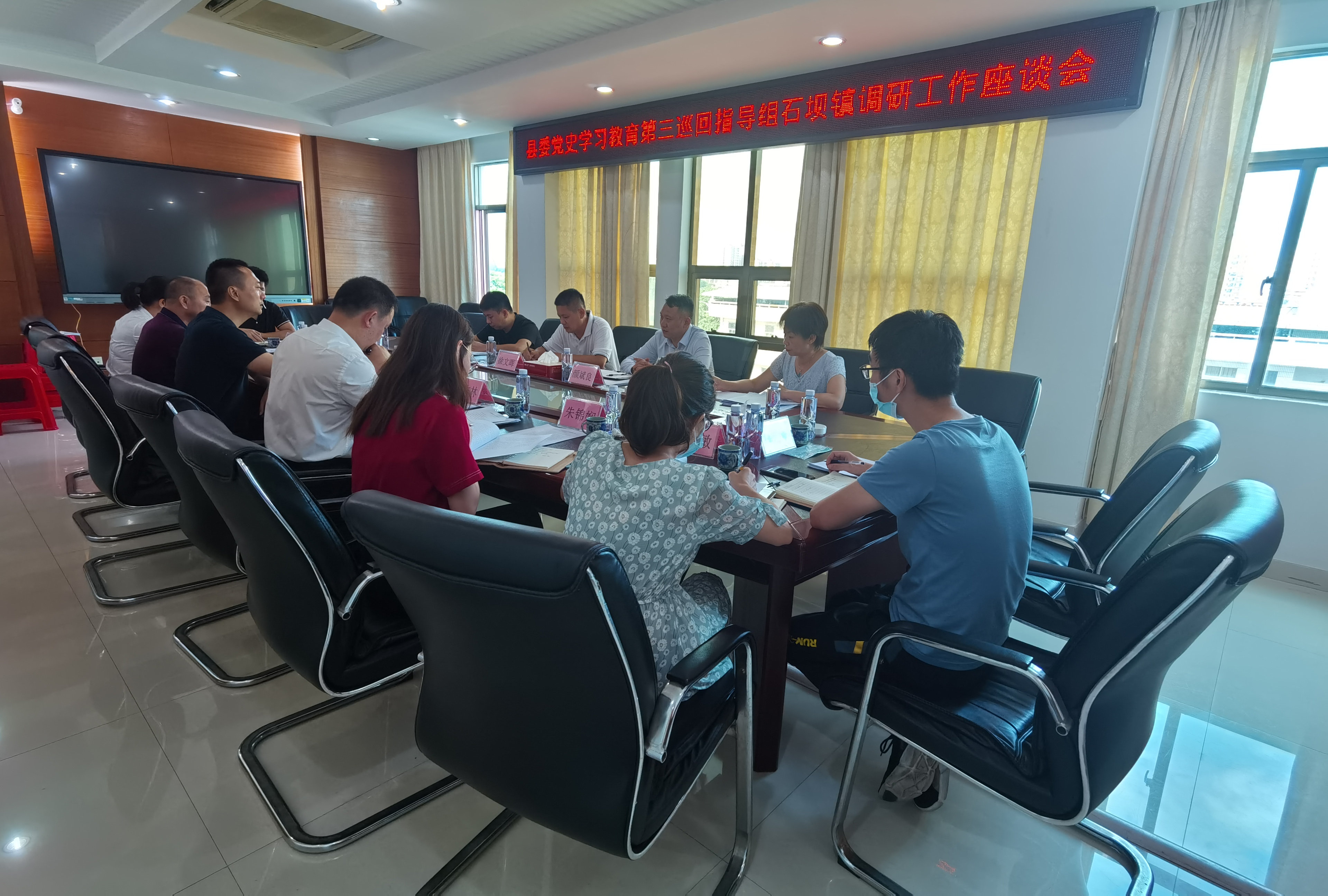 6月15日下午,縣委黨史學習教育第三巡回指導組到石壩鎮開展黨史學習教育調研工作座談會。石壩鎮黨委書記利勉及黨史學習教育領導小組成員陪同調研。