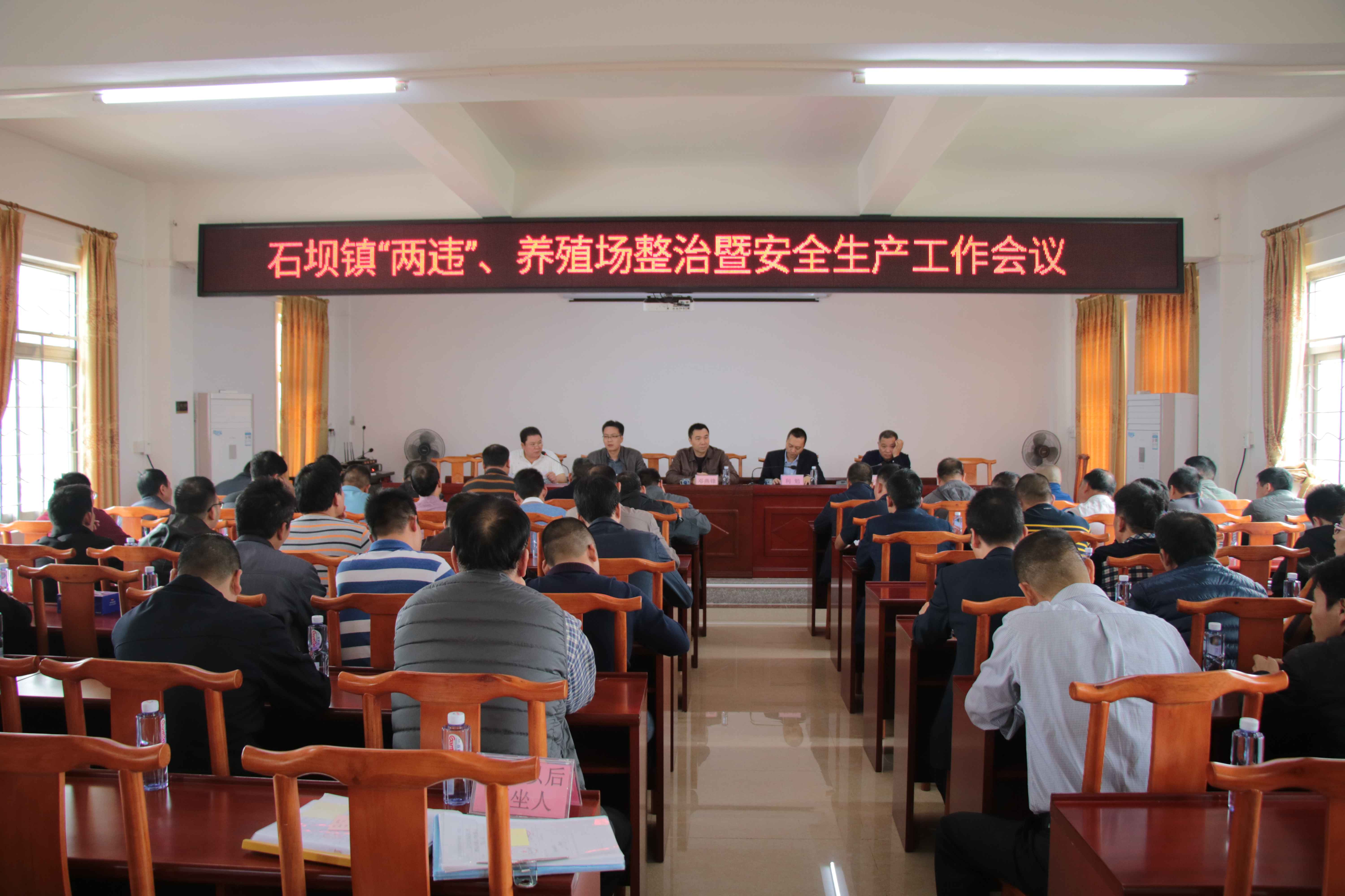 2019年4月3日,石壩鎮召開“兩違”、養殖場整治暨安全生產工作會議,鎮黨委書記鄧燕鋒,鎮黨委副書記、鎮長利勉,分管“兩違”、養殖場整治、安全生產的班子成員,各村(居)包村負責人、書記、主任及相關職能部門負責人參加了會議。