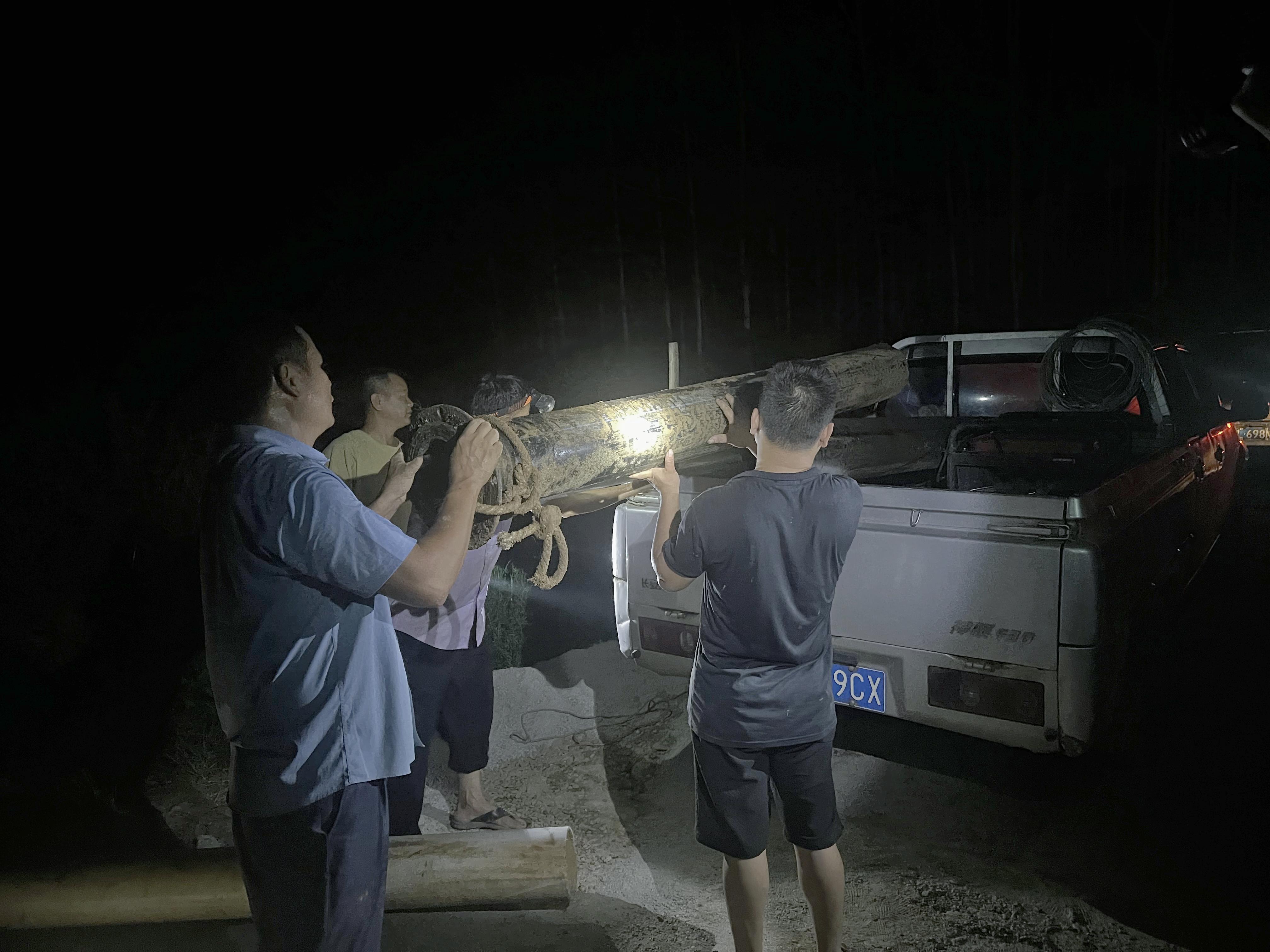 △黃作林深夜率隊到藍田村藍壩開展河道非法采砂專項整治行動