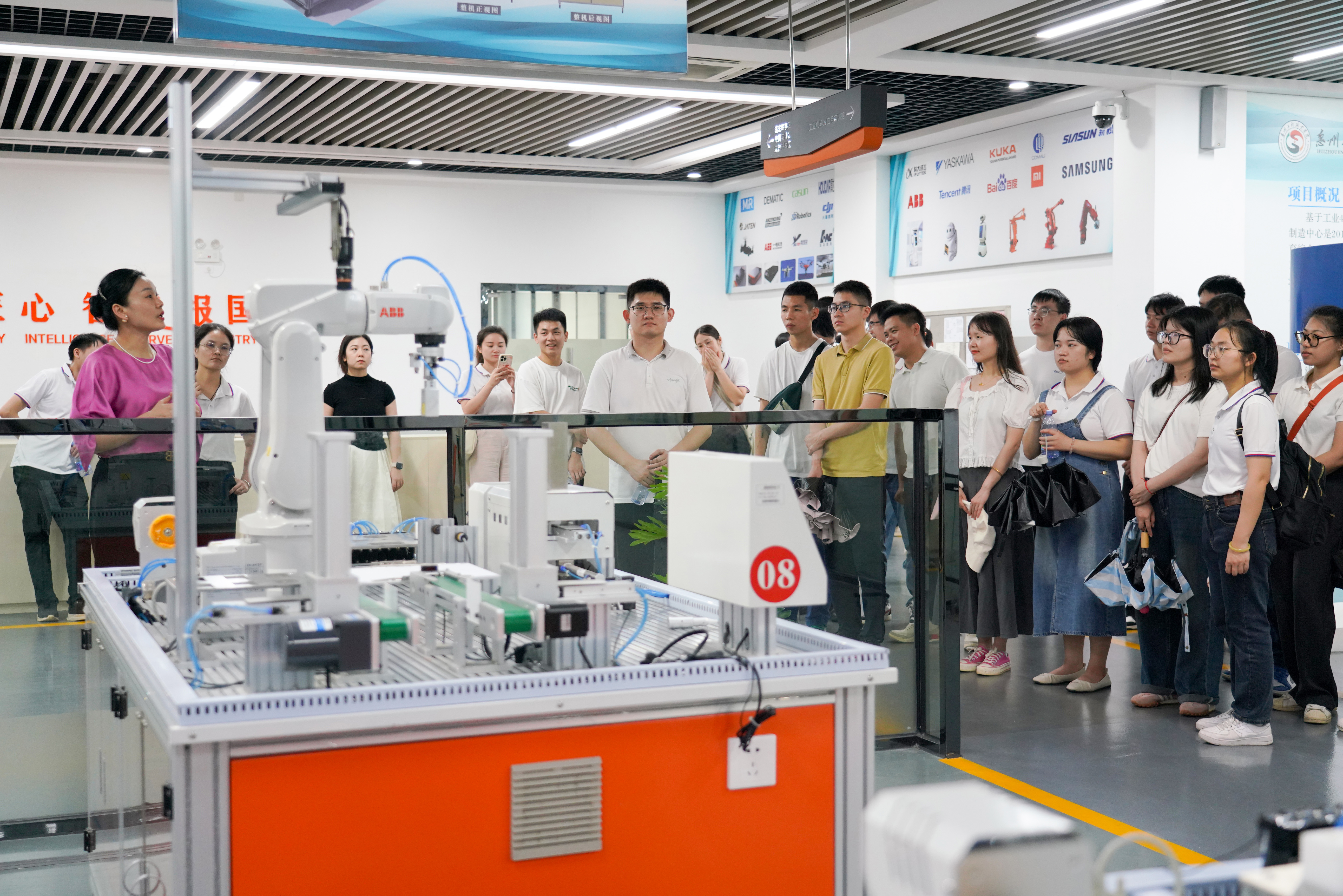 在講解員的帶領下,青年干部代表通過實地參觀學院四史館、蘭花種植大棚基地、菌類培育中心、工業機器人綜合實訓室等,了解學習現代化、規模化與“百千萬工程”、鄉村振興工作的關系,深刻感受“美麗鄉村”“美麗經濟”雙翼齊飛的生動實踐,進一步激發團結奮斗、干事創業的熱情。