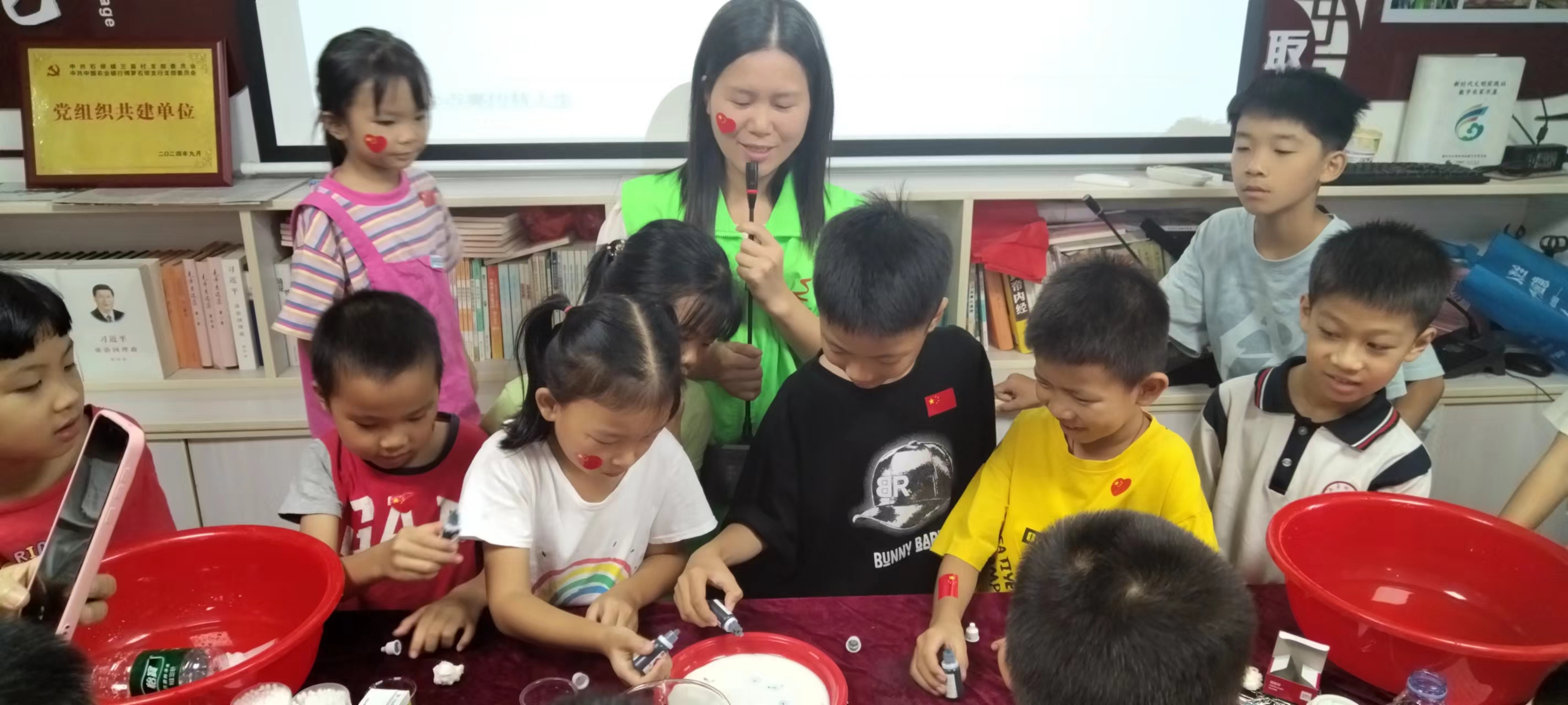 三嘉村村黨群服務(wù)中心開展“科普課程進(jìn)黨群”活動,志愿者老師們帶領(lǐng)青少年貼上小國旗,捧起“中國紅”小面盆,詳細(xì)地為孩子們示范科普小實(shí)驗(yàn)的制作過程,通過小小科學(xué)原理讓大家切身感受到科學(xué)強(qiáng)國、創(chuàng)新發(fā)展的益處。