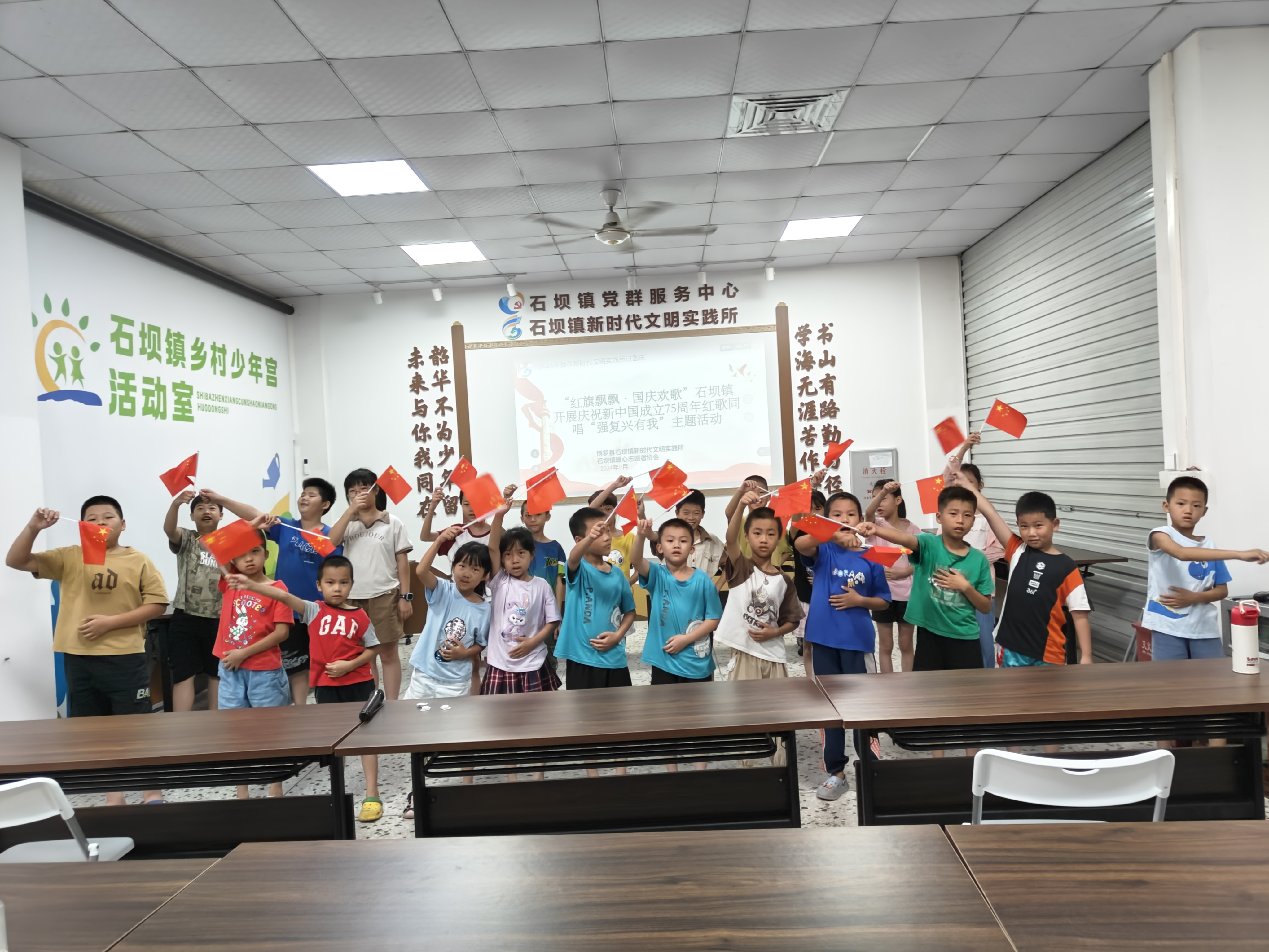 石壩鎮(zhèn)黨群服務(wù)中心開展紅歌合唱主題活動,志愿者老師們用生動的語言向孩子們講述了新中國成立75周年來的篳路藍(lán)縷,帶領(lǐng)孩子們合唱《歌唱祖國》,孩子們精神飽滿,驕傲地?fù)]舞著五星紅旗,用嘹亮的歌聲和真摯的情感表達(dá)自己對祖國的熱愛與祝福。