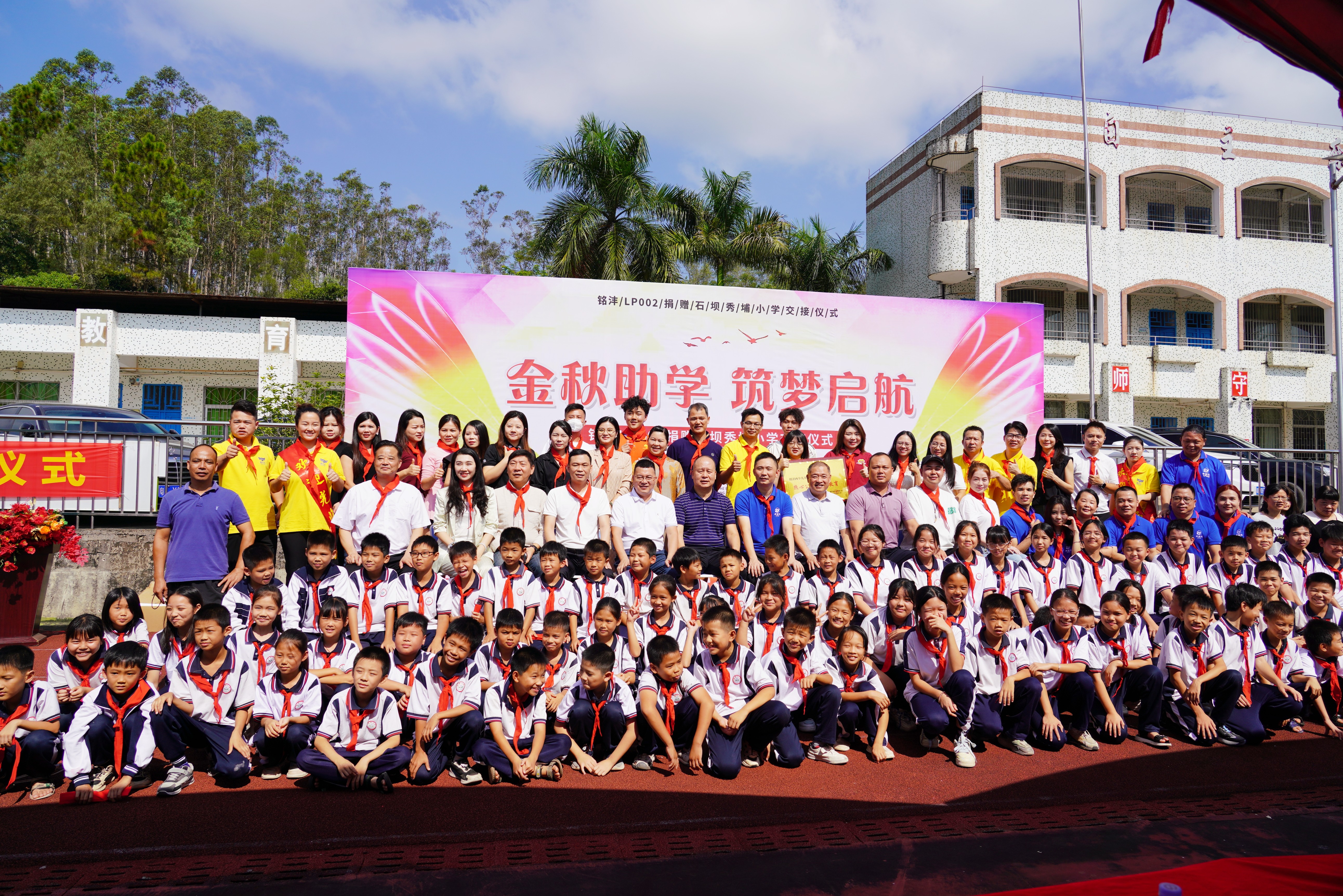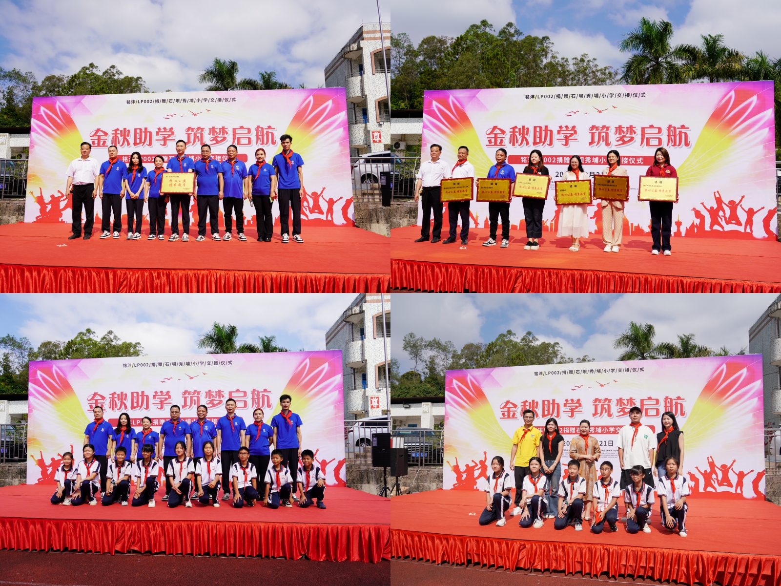 10月21日上午,銘灃LP002捐贈(zèng)石壩秀埔小學(xué)交接儀式在石壩鎮(zhèn)秀埔小學(xué)順利舉行。本次活動(dòng)由銘灃LP002團(tuán)隊(duì)組織400多名社會(huì)愛心人士,向石壩秀埔小學(xué)捐贈(zèng)學(xué)生課桌150套、搭建擋雨柵、修建危險(xiǎn)圍墻等項(xiàng)目,合計(jì)價(jià)值約7.9萬元。