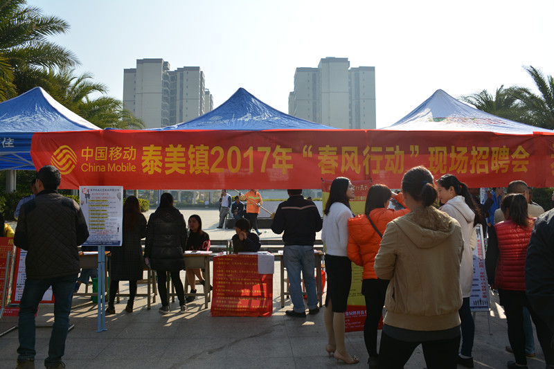 新春伊始,又一輪求職和企業招工的高峰期來臨。為促進我鎮農村富余勞動力就業,推動城鄉統籌發展,構筑農村富余勞動力與用人單位之間的橋梁,進一步解決農村勞動力就業問題和鎮轄區企業招工用人問題,2月17日,泰美鎮委、鎮政府會同鎮相關部門在泰美鎮文化廣場舉辦了2017年“春風行動”現場招聘會。