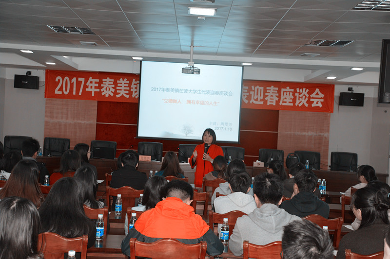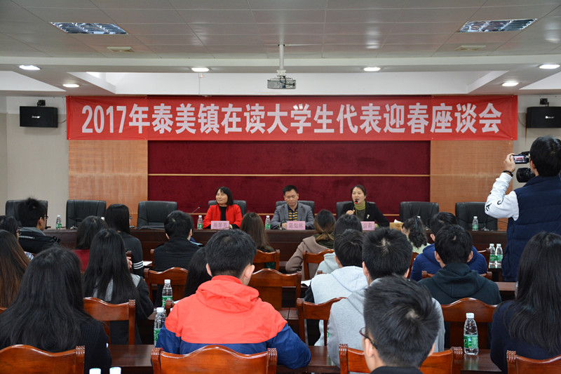 1月19日上午,“2017年泰美鎮在讀大學生代表迎春座談會”在泰美鎮政府三樓會議室召開,泰美鎮鎮長陳燦林、鎮人大主席趙誼莉、縣委組織部基層辦副主任周翠芳、泰美鎮各駐村第一書記以及來自泰美鎮秀嶺、新星等8個村的近70名在讀大學生代表參加了此次座談會。