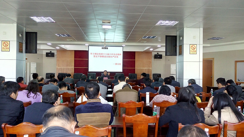黃石松以黨反腐敗斗爭取得的重大成果為切入點,結(jié)合十八屆六中全會,生動幽默地詮釋了十八屆六中全會精神,強調(diào)全面從嚴(yán)治黨是黨的十八屆六中全會的鮮明主題,是黨的十八大以來的最大亮點,是全體黨員干部的集體責(zé)任,必須堅定不移推進(jìn)全面從嚴(yán)治黨。 在如何履行黨員干部的職責(zé)中,他給出具體可操作的意見:一是堅定“四個自信”,要堅定社會主義道路自信、理論自信、制度自信、文化自信;二是增強“四個意識”,增強黨員的政治意識、大局意識、核心意識和看齊意識;三是踐行四個著力,著力增強黨內(nèi)政治生活的政治性、時代性、原則性、戰(zhàn)斗性,著力增強黨自我凈化、自我完善、自我革新、自我提高能力,著力提高黨的領(lǐng)導(dǎo)水平和執(zhí)政水平、增強拒腐防變和抵御風(fēng)險能力,著力維護(hù)黨中央權(quán)威、保證黨的團(tuán)結(jié)統(tǒng)一、保持黨的先進(jìn)性和純潔性。講座以強調(diào)做好本職工作為落腳點,主題鮮明,深入淺出,引得在場人員的廣泛共鳴和陣陣掌聲。