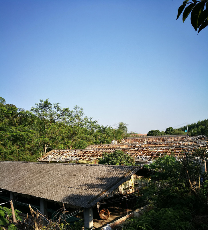 清拆前,養(yǎng)殖戶自行拆除的部分豬圈房頂。
