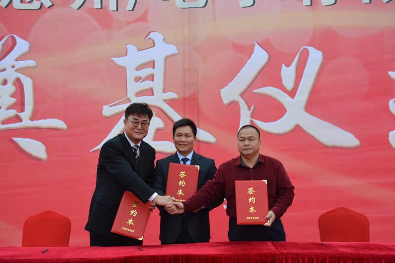 期間,新譜(廣州)電子有限公司總經理南宣祐、惠州明凱實業有限公司總經理彭明生、泰美鎮人民政府鎮長陳燦林進行了項目簽約儀式。