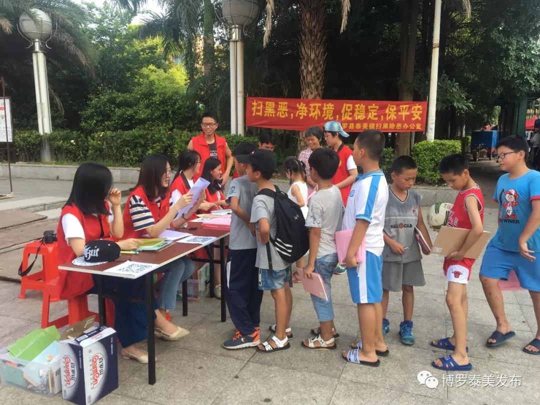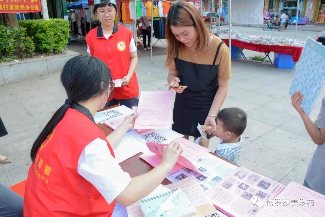 同日下午,團鎮委聯合鎮掃黑除惡辦又來到泰美文化廣場,開展以“掃黑惡、凈環境、促穩定、保平安”及“大力創建無毒社區,創一方凈土,保一方平安”為主題的掃黑除惡禁毒知識入萬家的宣傳活動。