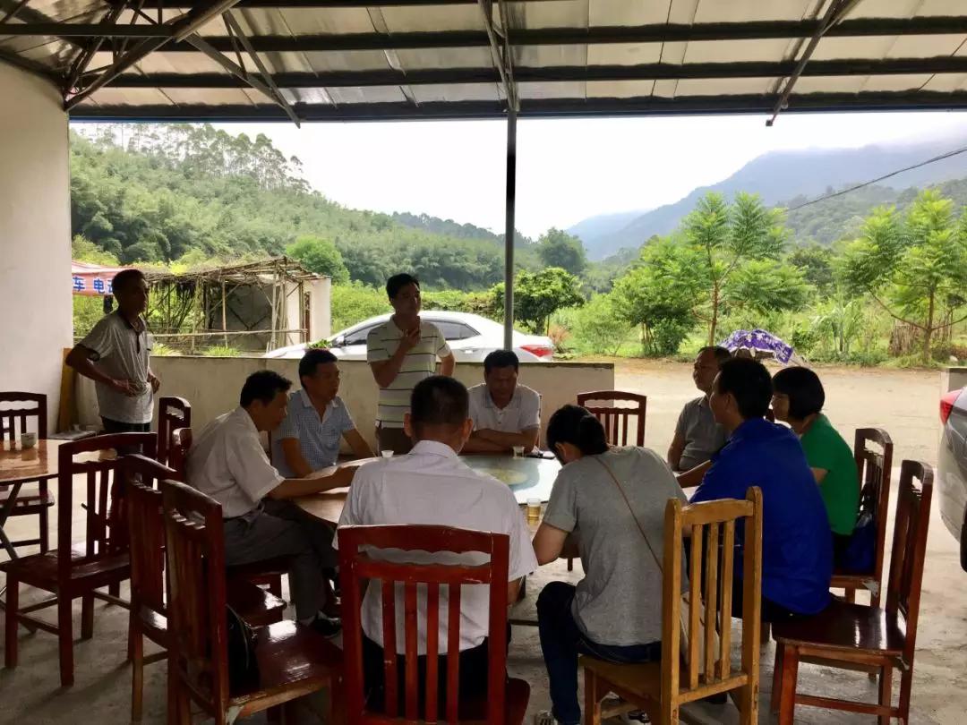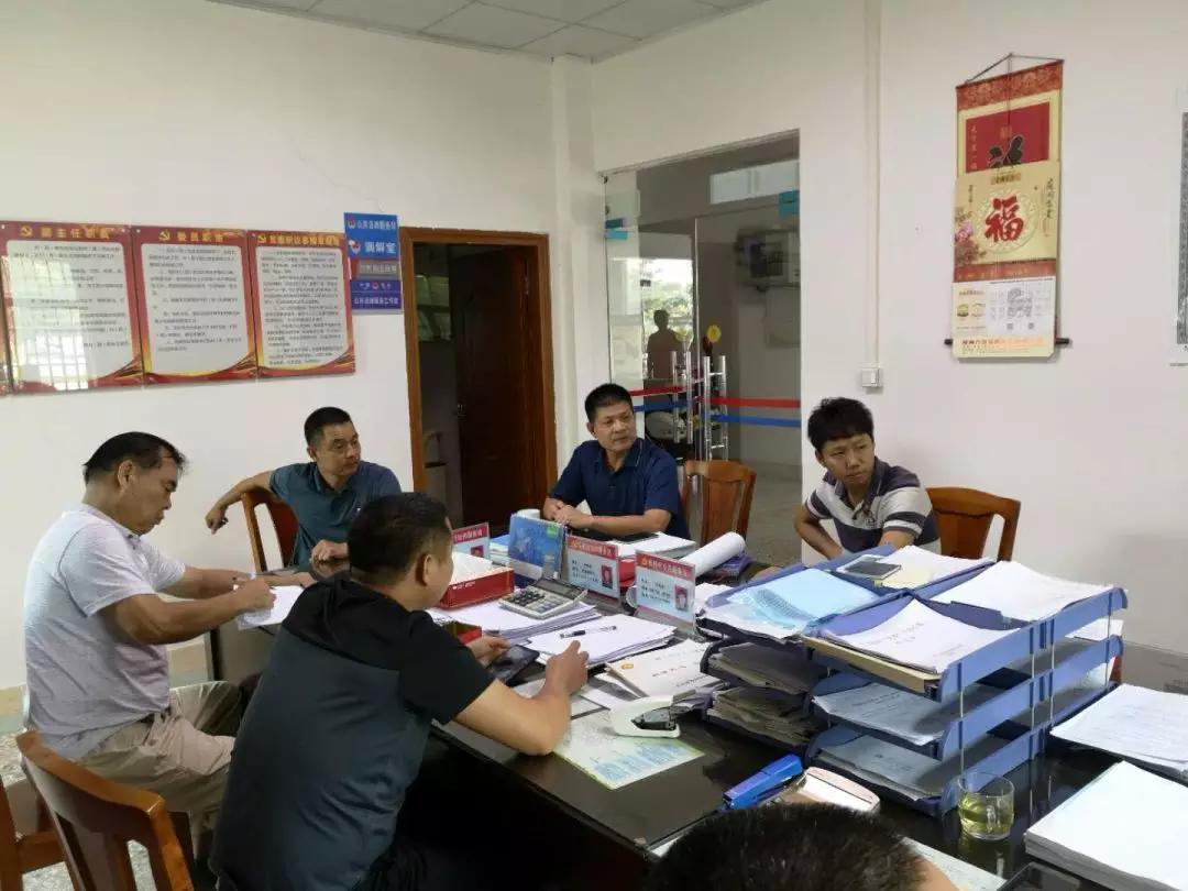 赤嶺村直聯團隊與村組干部在村委會共同商議關于推進農村集體資產改革的相關工作事宜。