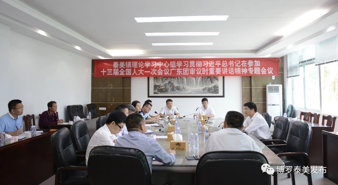 4月27日上午,我鎮召開理論學習中心組學習貫徹習近平總書記在參加十三屆全國人大一次會議廣東團審議時重要講話精神專題會議,縣委常委田勝思到會指導,泰美鎮三套班子成員,副科級以上領導干部參加會議。