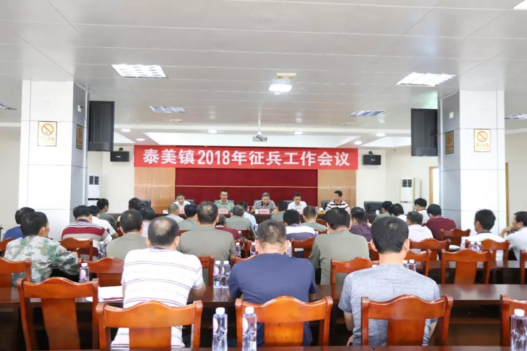 7月30日,泰美鎮委、鎮政府召開泰美鎮2018年征兵工作會議,鎮黨委副書記、鎮長鐘偉恒,鎮黨委委員曾世平、陳功儒,鎮大人副主席聶海舟,副鎮長曾志雄,廉潔征兵監督員,各村(社區)書記、主任及民兵營長參加會議。會議由鎮黨委委員、武裝部長李仕輝主持。