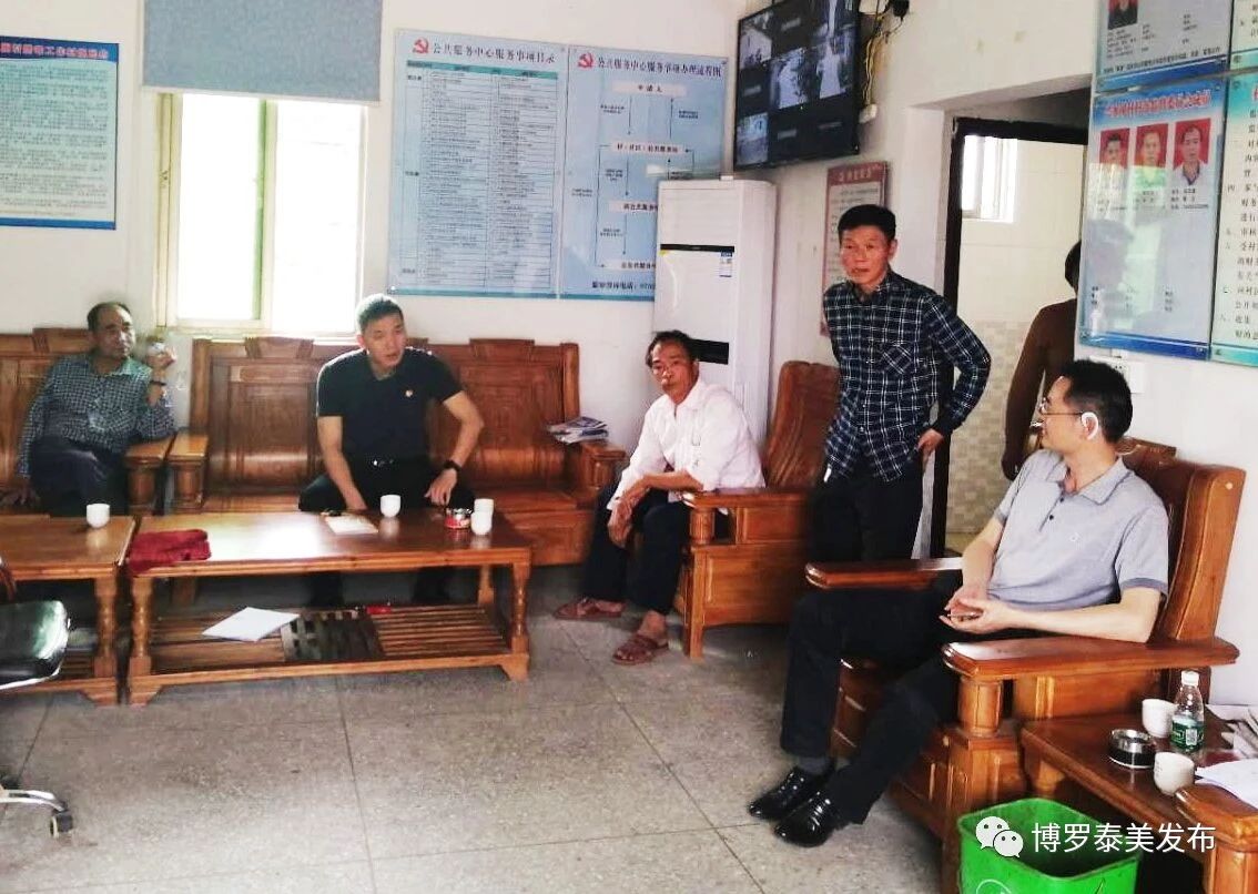 副鎮長曾志雄與岑坑村直聯團隊、村“兩委”干部在村委會對群眾來訪反映的問題組織雙方開展協調工作。