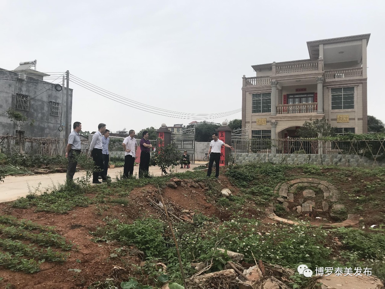 赤嶺村直聯團隊與村“兩委”干部會同羅村村“兩委”干部到赤嶺村良田圍小組高標農田現場共同協調灌溉水渠建設事宜。