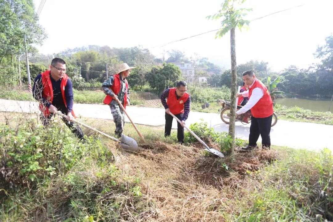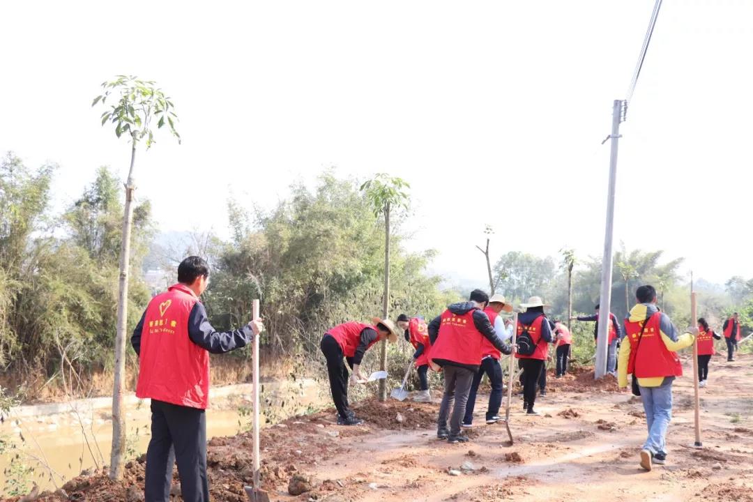 志愿者們?cè)谲嚧宕迳⑽菪〗M至姚夫人廟、隔離小組至水東陂小組的村道上,共種植了火焰木、黃花風(fēng)鈴及紅花風(fēng)鈴等300多棵,播撒下一片生機(jī)盎然的綠色。鮮紅的志愿者服和嫩綠的樹苗相互映襯,成為一道靚麗的風(fēng)景線,向廣大群眾傳遞著愛護(hù)自然的生態(tài)理念。