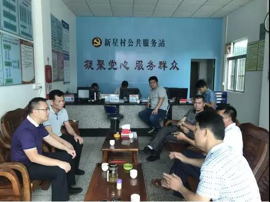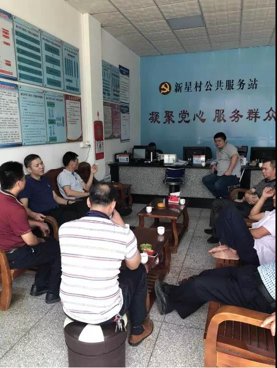鎮黨委副書記、鎮長鐘偉恒與新星村直聯團隊、村“兩委”干部共同研討解決贛深高鐵征地工作中遇到的問題。
