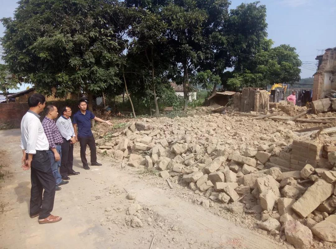鎮人大副主席聶海舟與沐村村“兩委”干部、直聯團隊到村內察看“三清三拆三整治”工作進展情況。