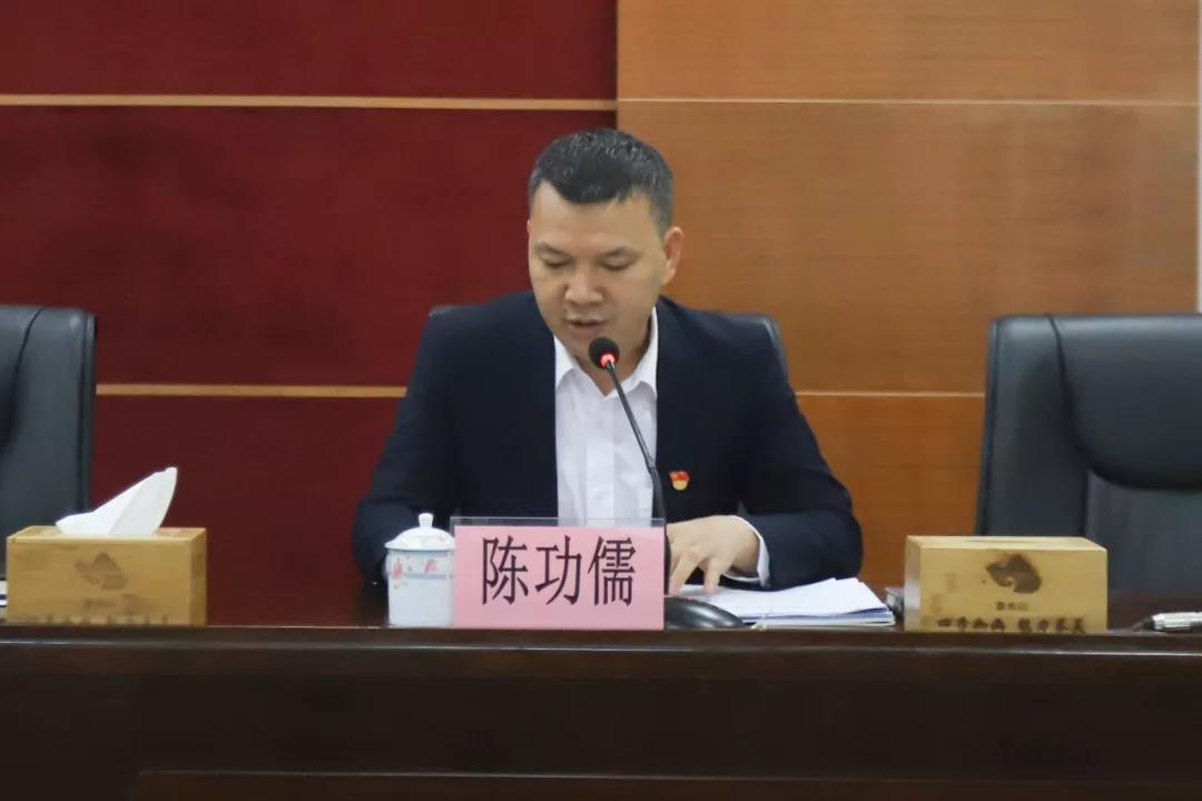 鎮黨委委員陳功儒向與會人員宣讀《關于2018年度村級工作績效考核情況的通報》并傳達學習《惠州市強化村黨組織領導核心地位暫行辦法》等相關文件精神