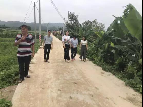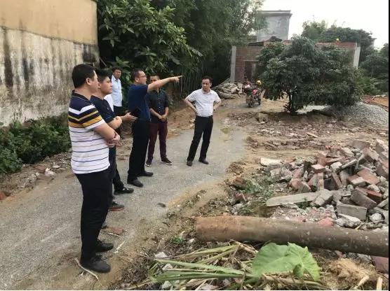 鎮(zhèn)人大主席趙誼莉與盤沱村直聯(lián)團(tuán)隊(duì)、村“兩委”干部一同在轄區(qū)察看村道硬底化工程建設(shè)情況。