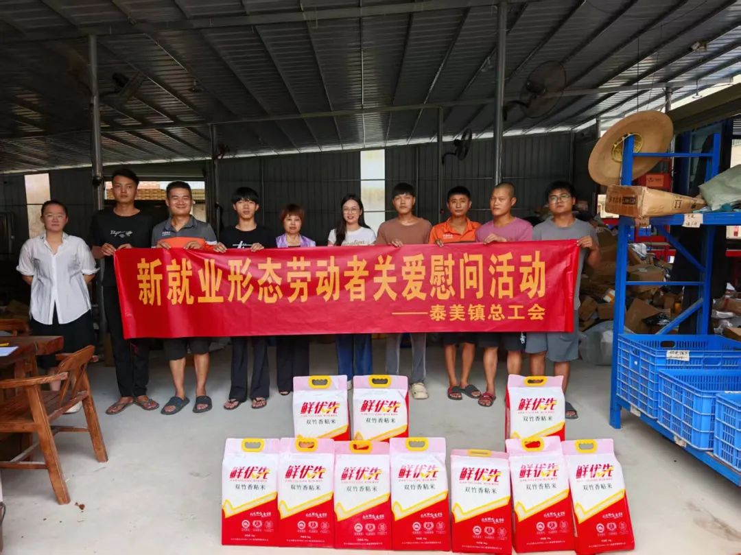 為切實將黨和政府的關懷以及工會組織的溫暖送到新就業形態勞動者心坎上,近日,泰美鎮總工會組織開展了新就業形態勞動者慰問活動,聚焦快遞員、外賣配送員、物流貨運司機、網約車司機等新就業形態勞動者群體,為他們送上了大米、面條等生活必需品。