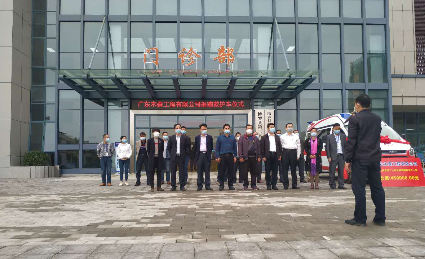 博羅縣第二人民醫院(楊村鎮中心衛生院)院長吳開鋒代表醫院對廣東木森工程有限公司表示由衷的感謝,感謝其恩澤健康的善行義舉和情系醫療、大愛無疆的精神!同時表示將以此為契機,把博羅縣第二人醫院建設好、發展好,充分發揮救護車救死扶傷的功能,為楊村鎮及周邊鄉鎮群眾的健康保駕護航!