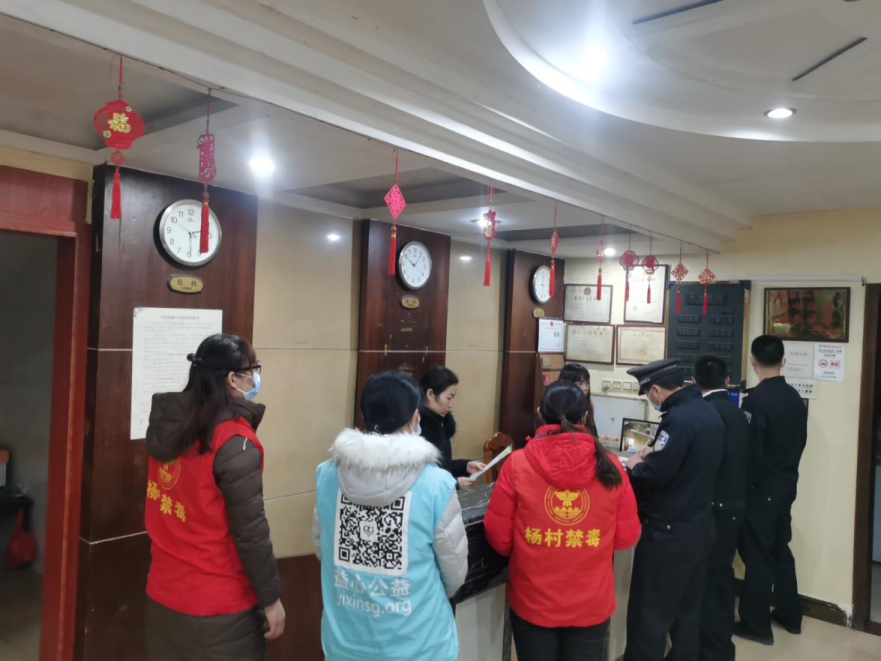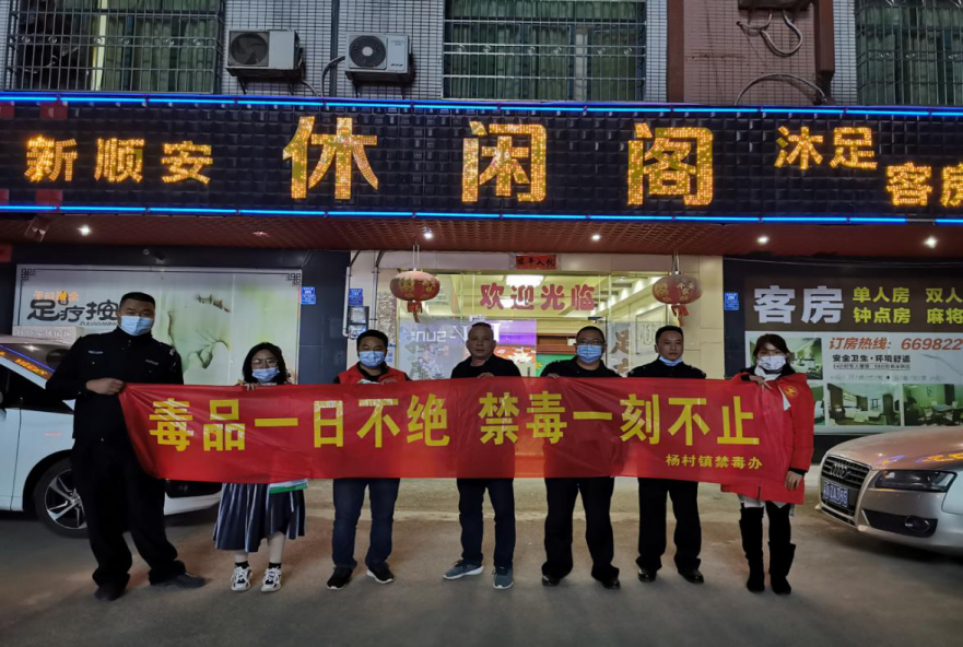 為貫徹落實好省市縣關于整治毒品突出問題決策部署,杜絕公共娛樂場所涉毒違法犯罪現象發生,12月30日晚上,楊村鎮政府組織鎮禁毒辦、楊村派出所、綜治辦、禁毒社工在圩鎮范圍內開展元旦節前公共娛樂場所禁毒大排查暨宣傳教育活動。鎮委副書記、政法委書記黃利明,副鎮長葉志強,楊村派出所所長梁志華參與本次排查行動。
