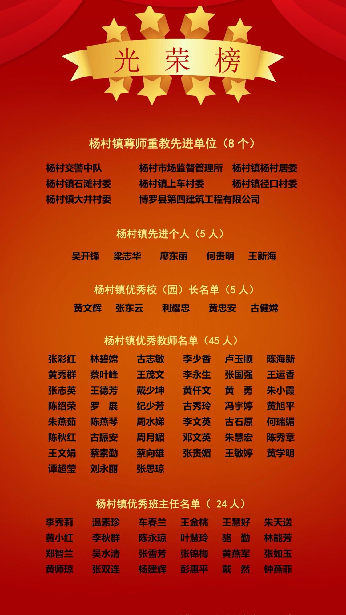 楊村鎮2021年尊師重教先進單位和先進個人、優秀校(園)長、優秀教師、優秀班主任名單