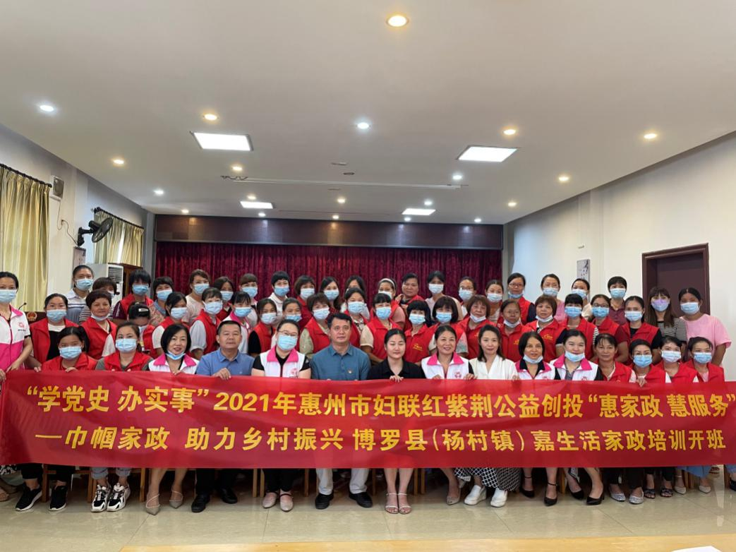 吳璇在啟動儀式上傳達學習了習近平總書記在慶祝中國共產黨成立100周年大會上的重要講話精神,并宣布博羅縣婦聯紅紫荊婦女兒童公益服務項目——巾幗家政服務培訓助力鄉村振興項目啟動正式開課。