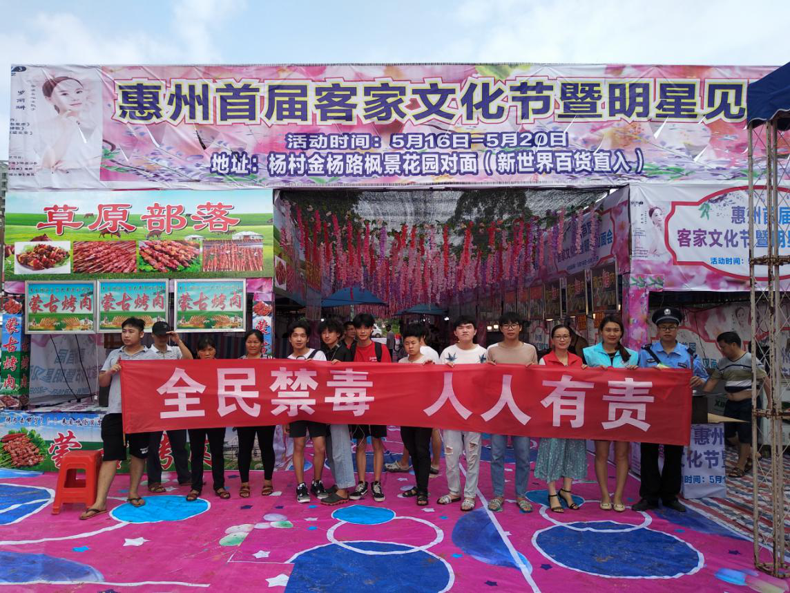為進一步增強群眾防范毒品的意識,營造我鎮全民禁毒的良好氛圍,5月16日上午,楊村鎮禁毒辦聯合派出所、禁毒社工、禁毒志愿者隊伍到楓景花園小區對面——惠州首屆客家文化節暨明星見面會現場開展以“全民禁毒 人人有責”為主題的禁毒宣傳教育活動,活動主要采取拉橫幅、派發禁毒宣傳單張及禁毒宣傳小冊子方式開展,倡導健康無毒生活理念。