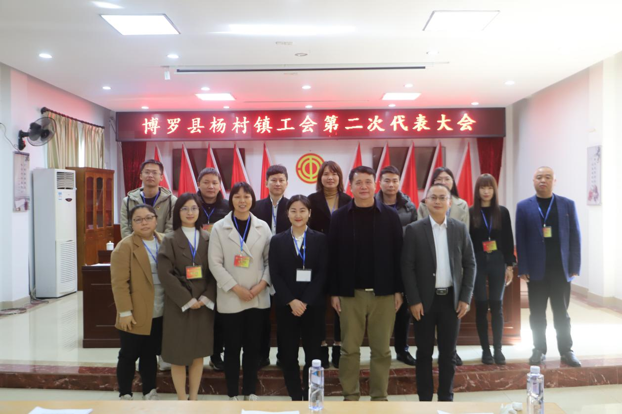 (縣總工會領導、鎮委領導與博羅縣楊村鎮總工會第二屆委員會全體委員合影留念)