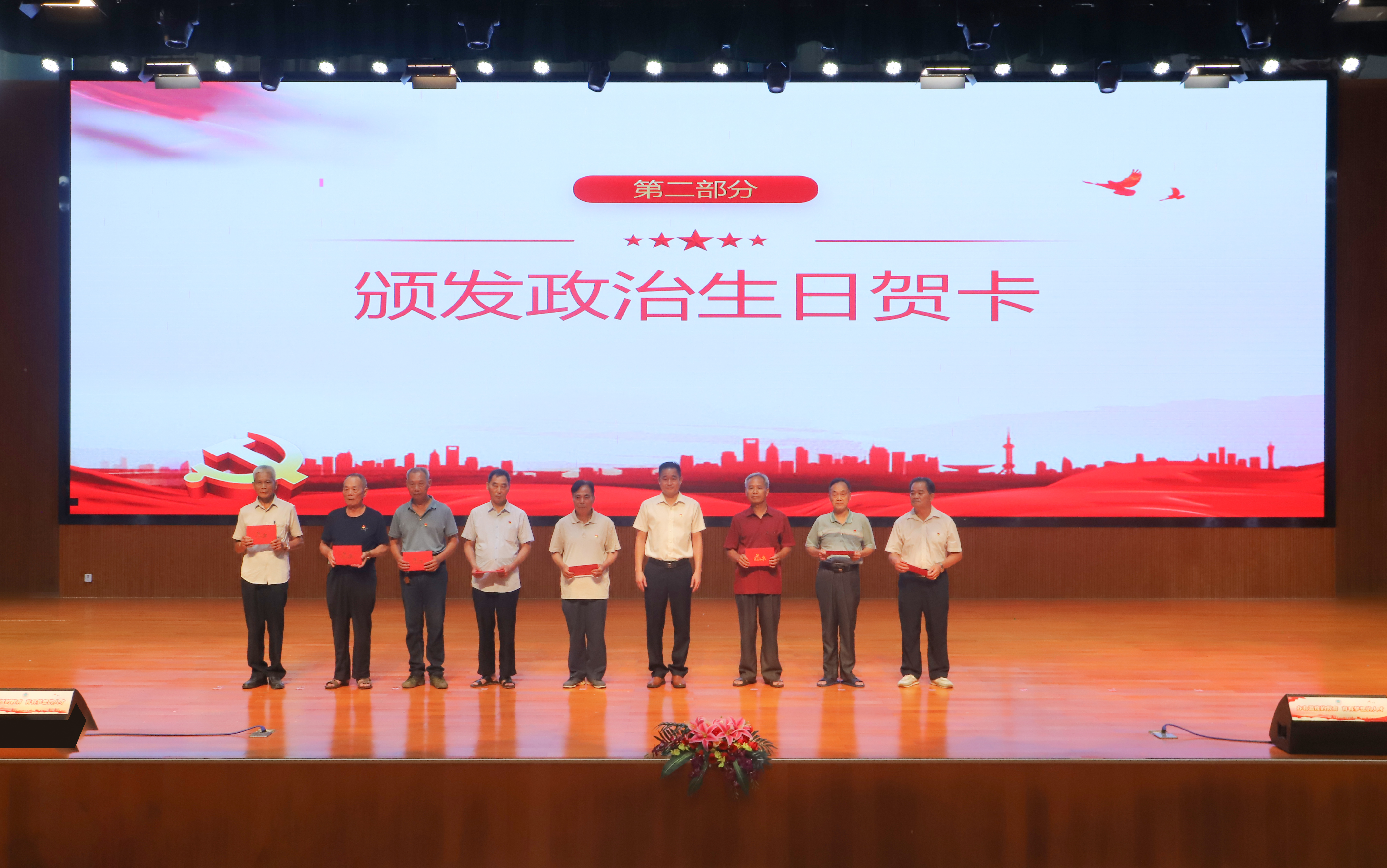 鎮(zhèn)黨委書記鄧田芳帶領(lǐng)全體參會黨員重溫入黨誓詞,并為3名老黨員頒發(fā)“光榮在黨50年”榮譽(yù)勛章;鎮(zhèn)黨委副書記、鎮(zhèn)長梁振成為8名黨員代表頒發(fā)政治生日賀卡。